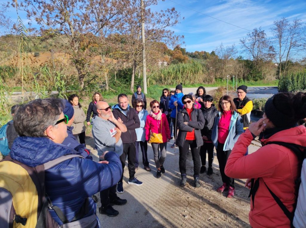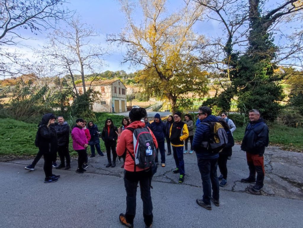 Il percorso ad anello è proseguito costeggiando la spiaggia per poi tuffarsi immediatamente nella natura, risalendo lungo il fiume fino ad arrivare in collina. Attraverso i 7 km, il gruppo ha potuto godere della ricchezza della flora e della storia di Cupra Marittima, con panorami mozzafiato che hanno regalato incredibili scorci sul mare, il tutto sotto un cielo limpido che ha permesso di godere appieno della vista.