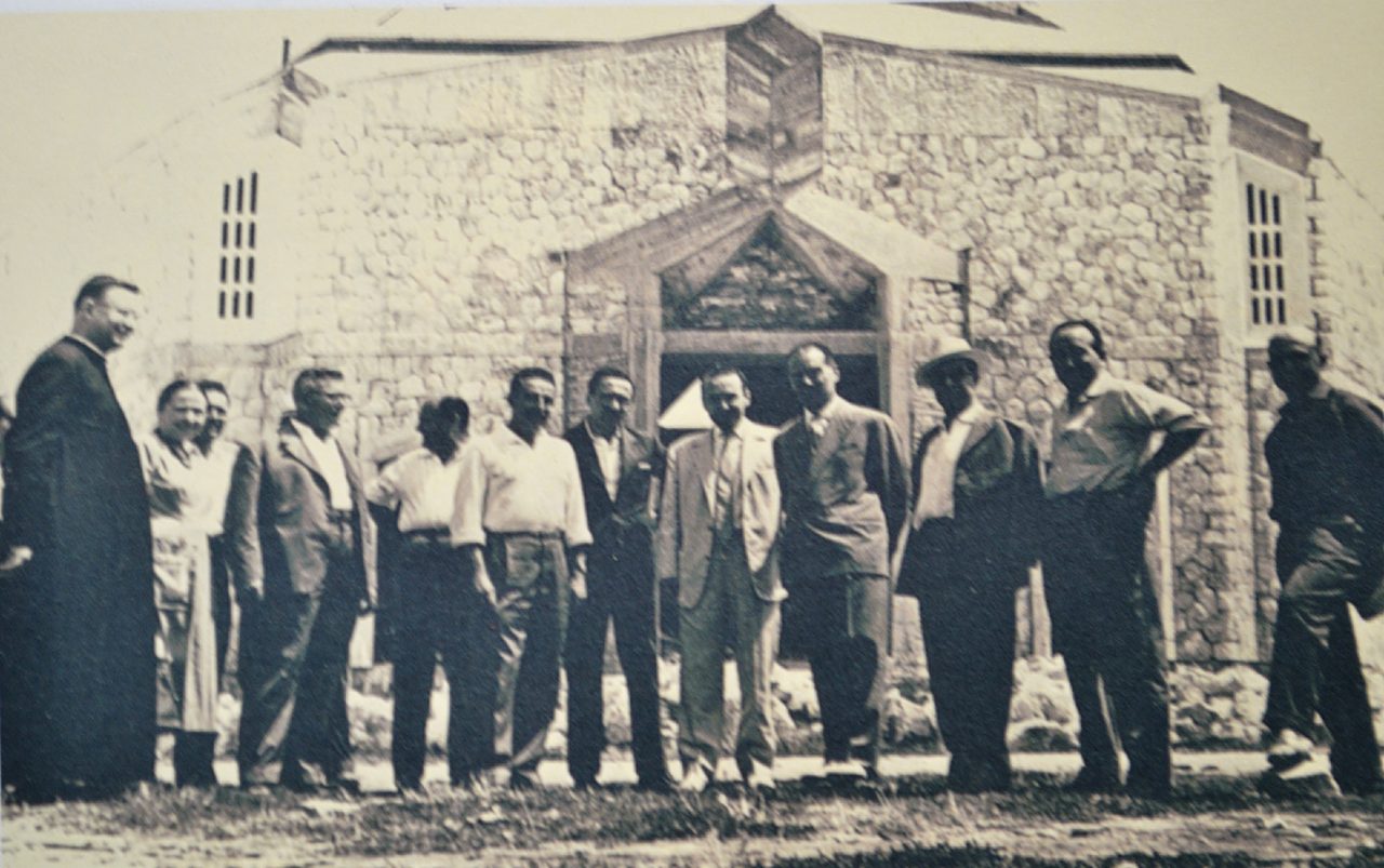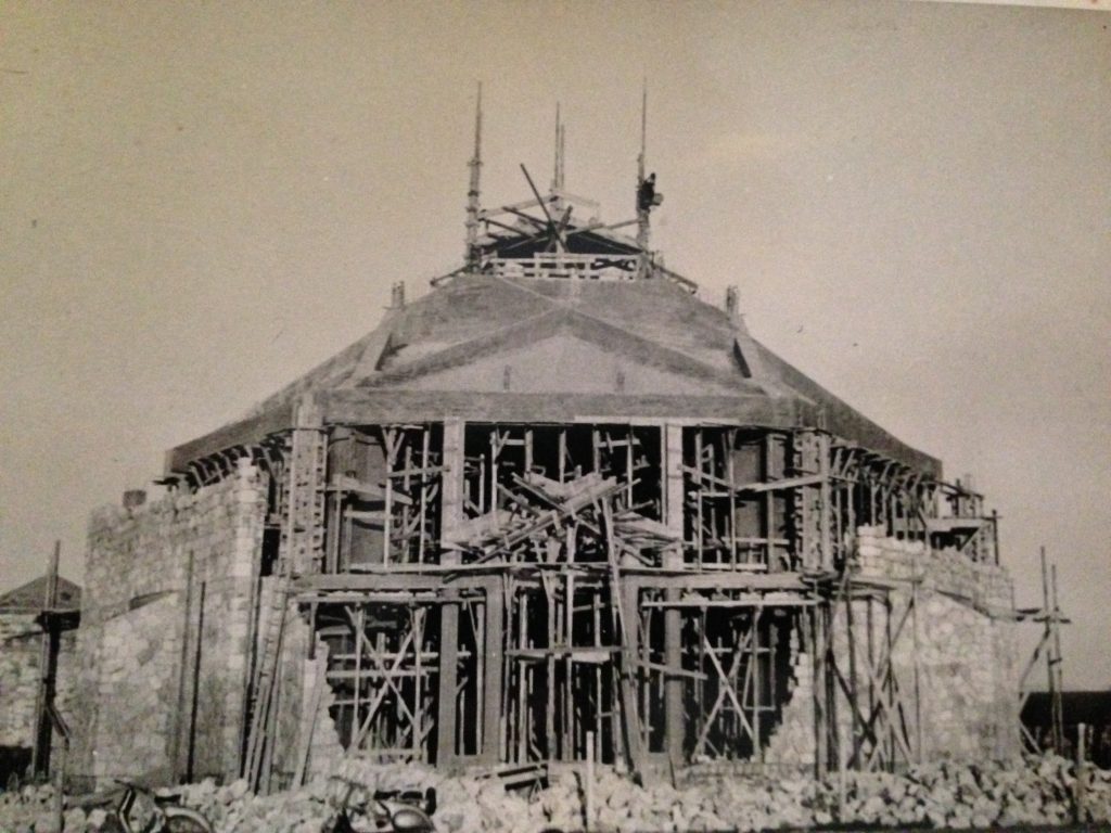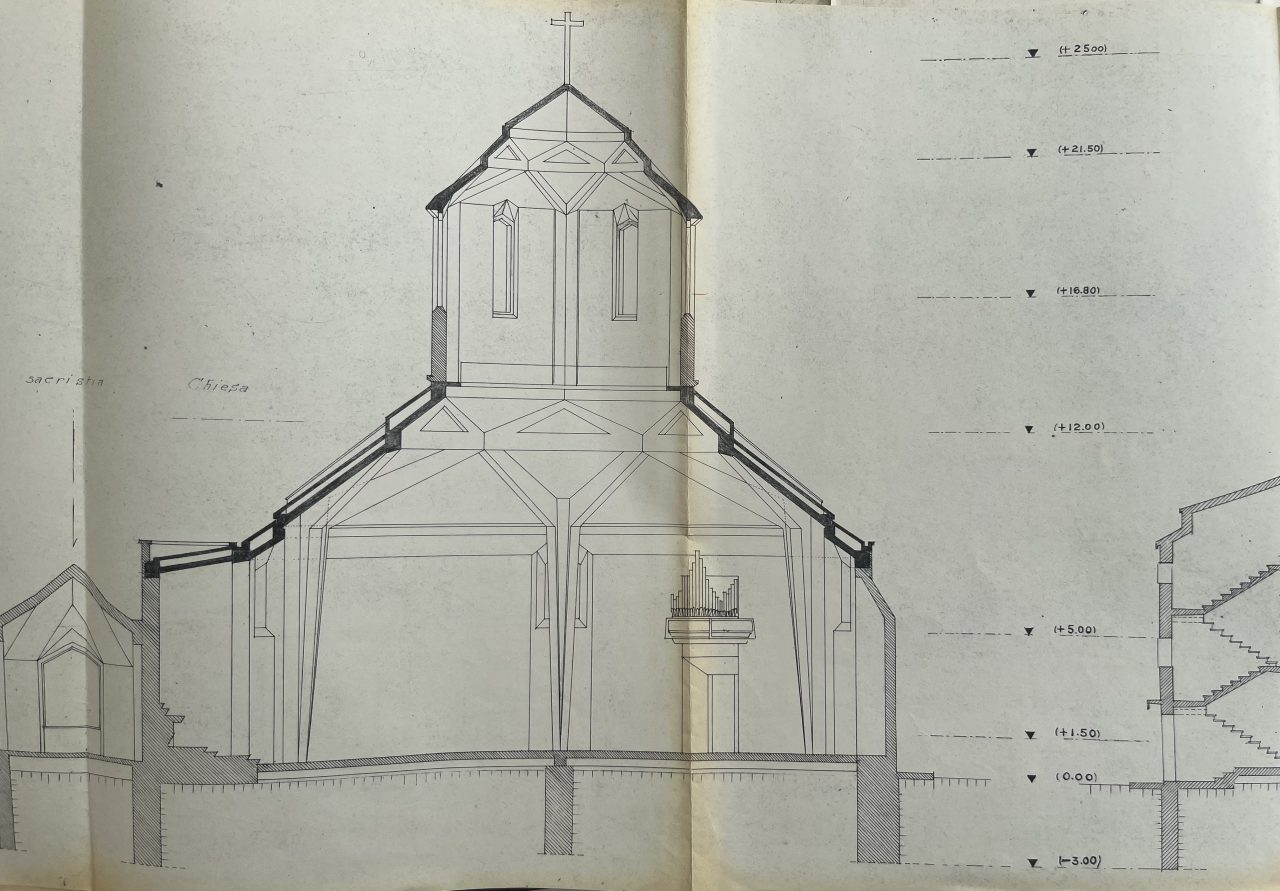 La chiesa in costruzione, nell’immagine anche l’architetto Sabbatini