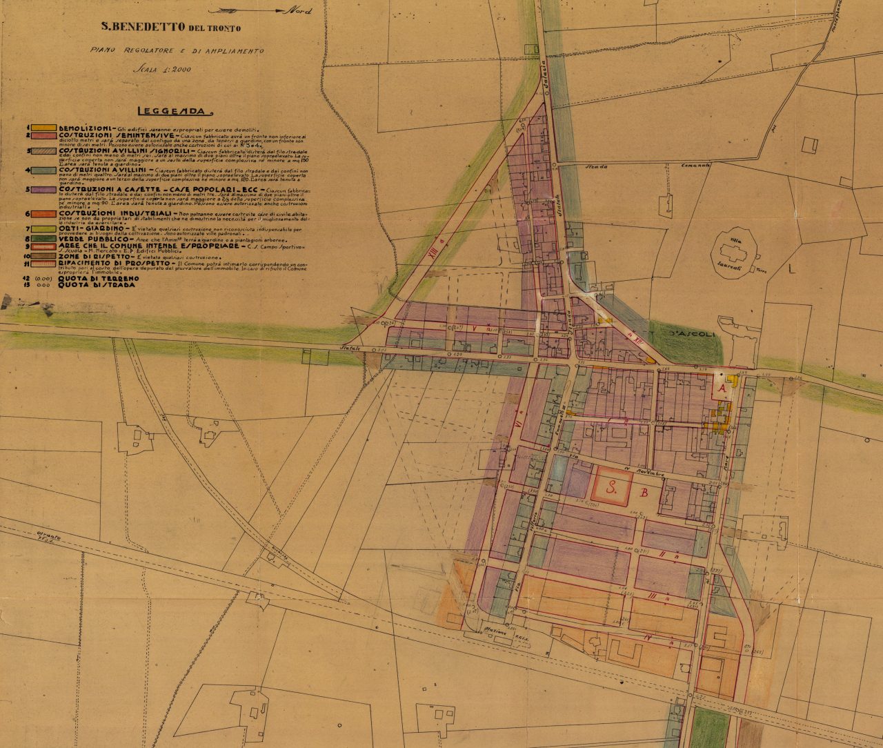 Nel 1938, dopo l’aggregazione di Porto d’Ascoli al Comune di San Benedetto del Tronto (1935), l’ingegner Luigi Onorati ratificò tale indicazione nel nuovo Piano Regolatore, indicando con la lettera “B” l’area dell’attuale piazza, collocata in posizione baricentrica rispetto al quadrilatero formato dalle attuali vie Nazario Sauro, Del Mare, Enrico Toti e Filippo Turati, vero cuore urbano della frazione.
