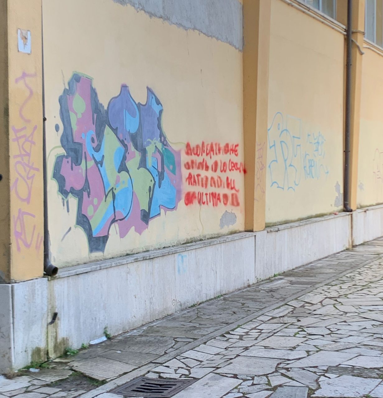 Non si tratta di un caso isolato. Non lo era allora e non lo è oggi. In passato le stesse scritte apparse su più edifici scolastici cittadini hanno suscitato indignazione e una forte reazione collettiva da parte di studenti, istituzioni, associazioni e cittadini, i quali hanno più volte manifestato pubblicamente solidarietà alla giovane, condannando con decisione un gesto definito vile, sessista e inaccettabile.