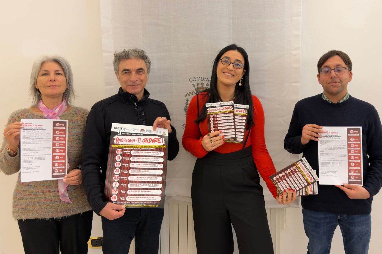 Dopo il gran successo della scorsa edizione, è stato presentato nella sala consiliare del Comune di Monteprandone, il calendario di “Rassegna-ti a ridere!“: il festival interregionale di teatro amatoriale, giunto alla nona edizione, organizzato dalle compagnie Nuovo Teatro Piceno di Castel di Lama e Anime sul palco di Monteprandone, patrocinato dalla Uilt Marche, dal Comune di Monteprandone e dall’Auser Insieme Monteprandone. Grande proposta per un pubblico senza età di spettacoli divertenti, ma anche saggi. Il costo del biglietto singolo è di 8 euro, i minori di 14 anni e gli over 65 pagano 5 euro. L’abbonamento a 8 spettacoli è di 48 euro. L’entusiasmo è confermato già dalle prime prenotazioni: ben 22 abbonamenti acquistati, altri 12 prenotati su un totale di 167 poltrone da occupare.
