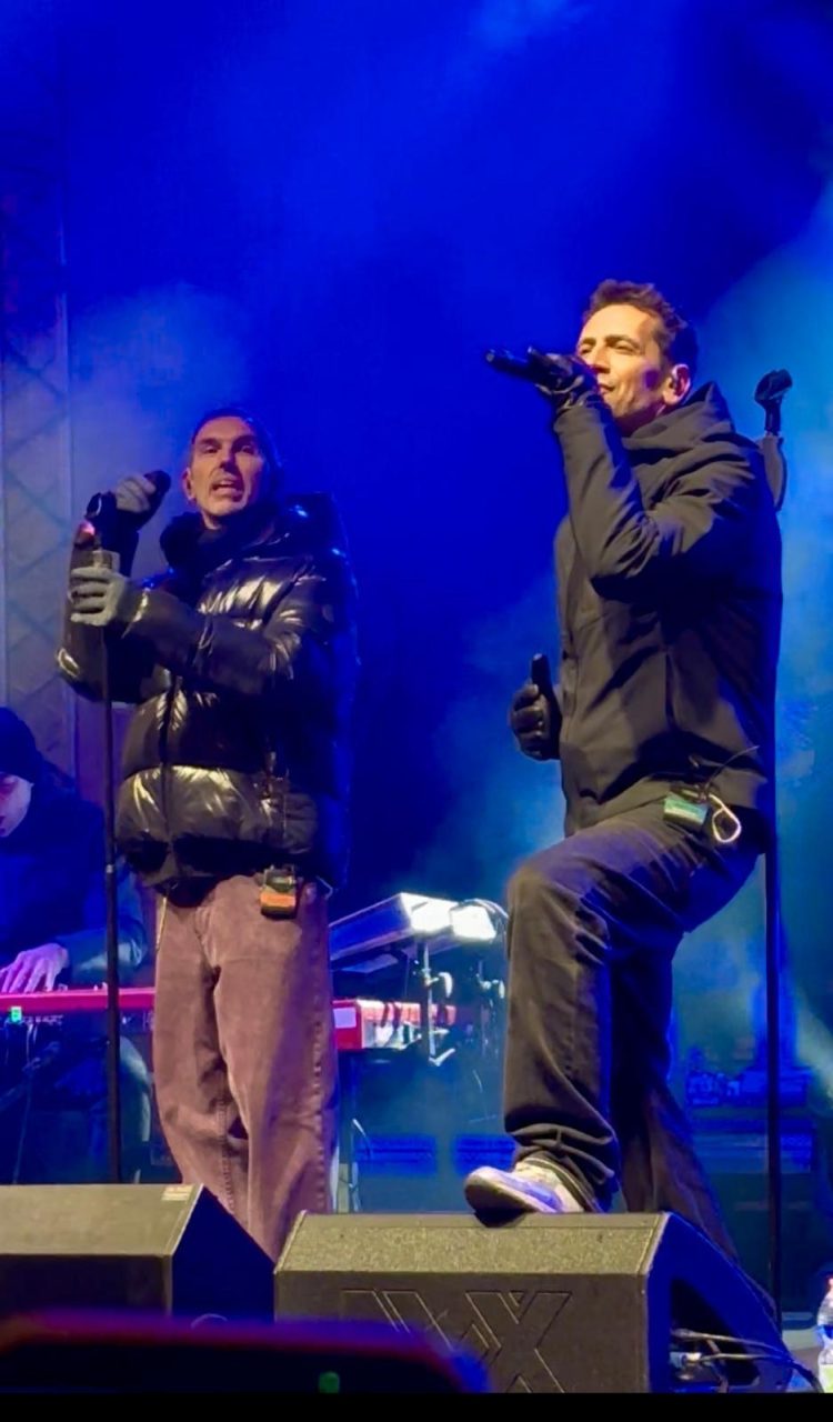 L’ultima serata dell’anno si è aperta alle 22 con un dj set pensato per accompagnare il pubblico verso il momento centrale della serata, che ha visto il clou alle 23 con il concerto degli Zero Assoluto. Il duo romano, amato da diverse generazioni e formato da Matteo Maffucci e Thomas De Gaspari, ha ripercorso i suoi successi. Dai tormentoni “Semplicemente”, canzone esclusa al Festival di Sanremo ma rimasta per trenta settimane in classifica, raggiungendo la seconda posizione, e “Per dimenticare”, con cui hanno vinto il disco d’oro, a “Mezz’ora”.