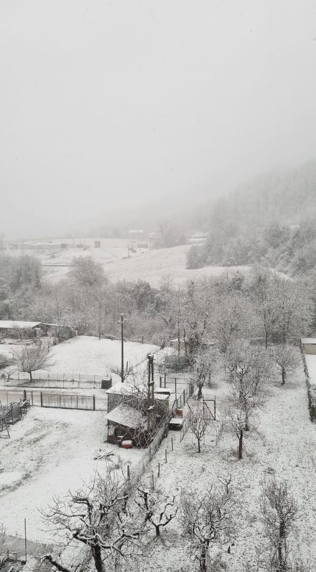 Tetti e campi imbiancati, le auto avvolte da coperte e un’orizzonte tagliato dalla nebbia: questo il paesaggio di Arquata, Amandola e Comunanza, ma anche di Ripatransone e del territorio del litorale, dove è più raro che questo tipo di precipitazioni attecchisca.