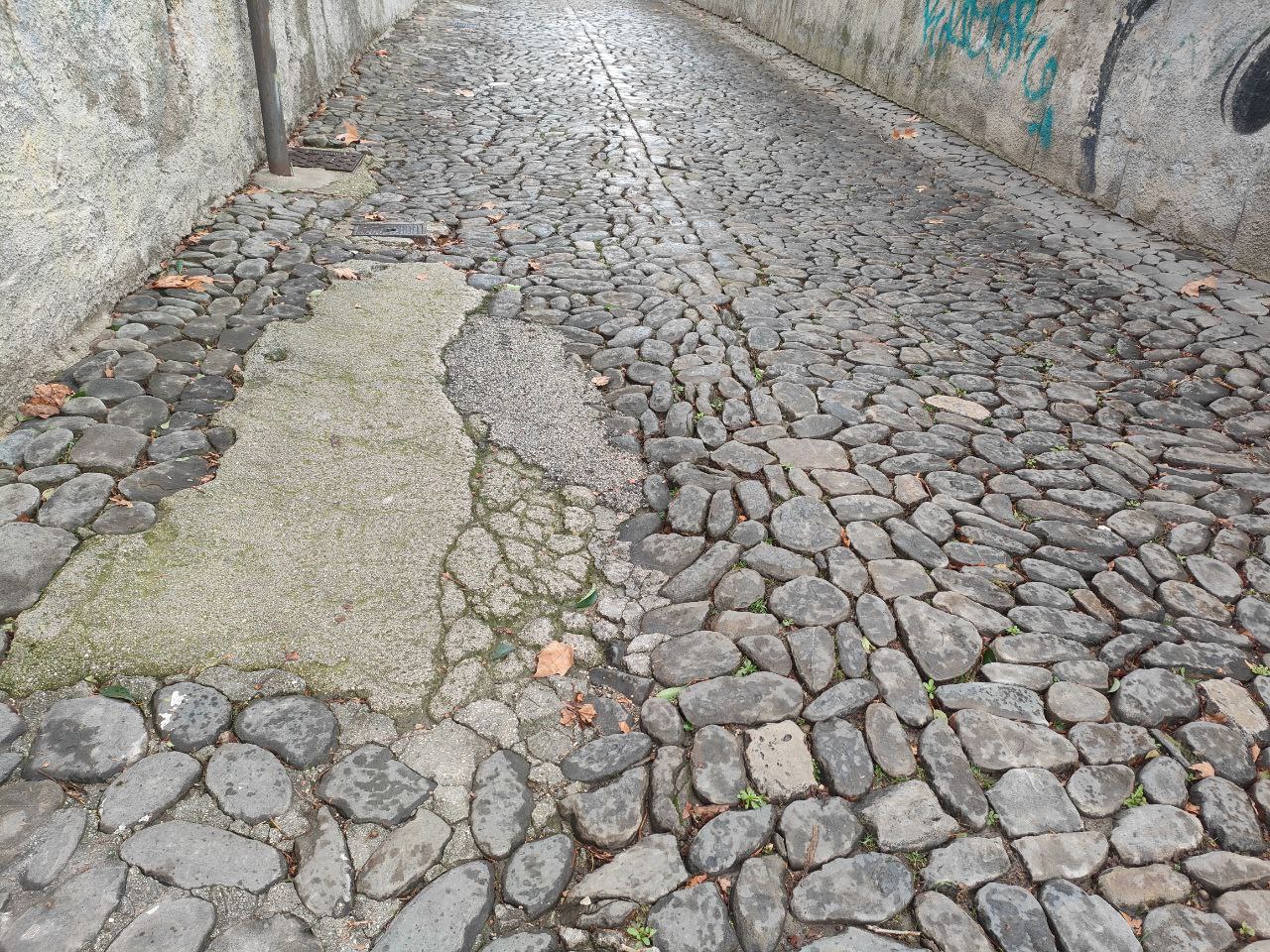 Cosa ci fa il cemento tra i ciottoli di fiume delle nostre rue? Se prima era un’eccezione, oggi sembra dilagare. E non va affatto bene. Basta farsi un giro tra le caratteristiche (e bellissime) stradine del cuore cittadino per rendersene conto. All’effetto cromatico vivo dato dal mix tra il colore delle pietre e quello verde dell’erba che vi cresce attorno si va via via sostituendo un grigio anonimo e spento che esteticamente lascia perplessi, se non addirittura costernati, verso come quello che è un punto di forza delle cento torri viene puntualmente trattato.