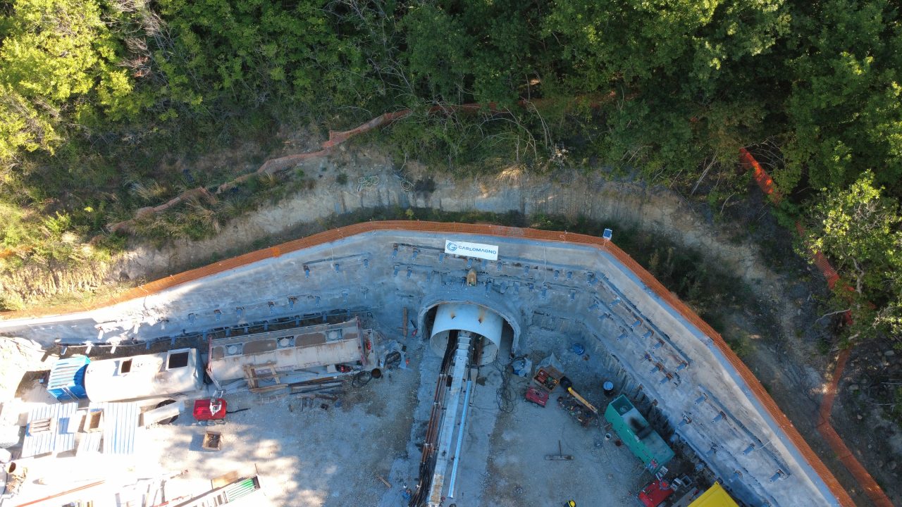 LA GALLERIA – Arriva adesso, però, la fase più complessa e tecnologica dell’operazione. Con la Tbm infatti prende il via lo scavo della galleria di Grisciano: una macchina che procede “come una grande talpa”, frantumando la roccia, evacuando il materiale con carrelli e, contemporaneamente, posando lo scudo in calcestruzzo che costituisce l’ossatura circolare della galleria. La conclusione di questa fase è stimata in 10–12 mesi, con movimentazione di oltre 130.000 metri cubi di roccia.