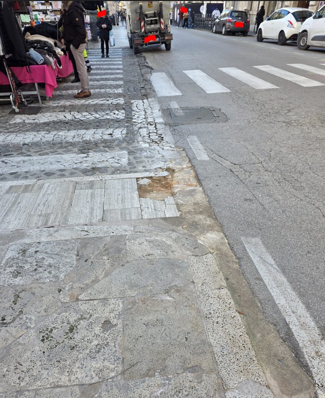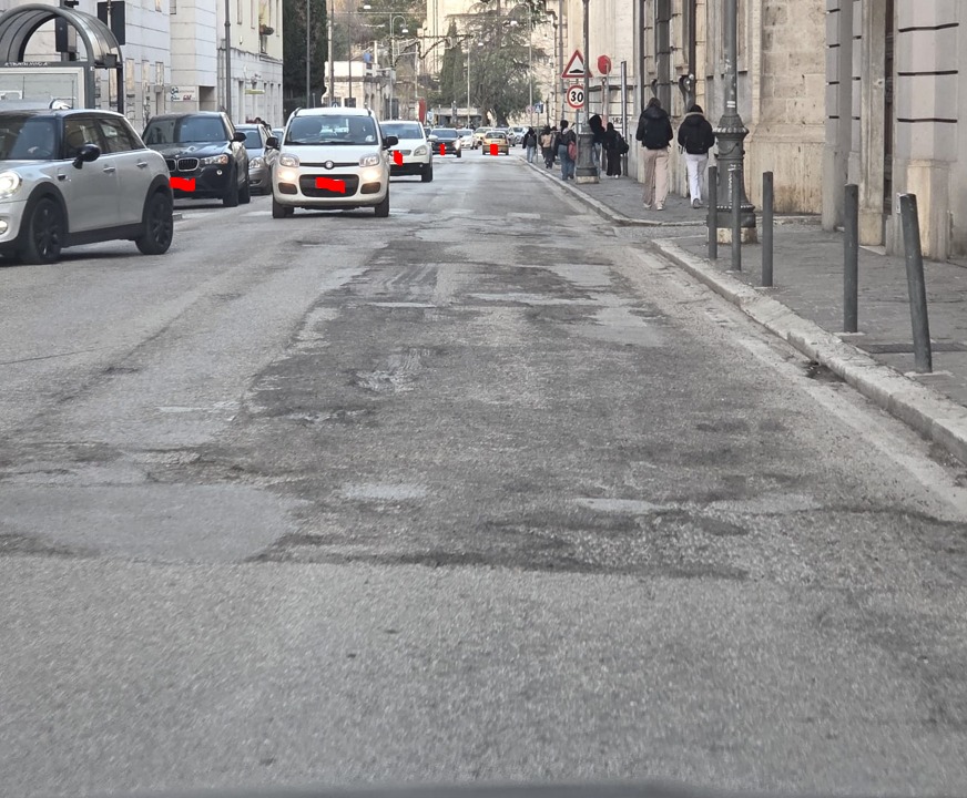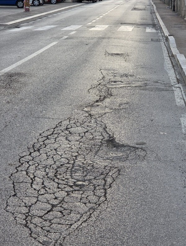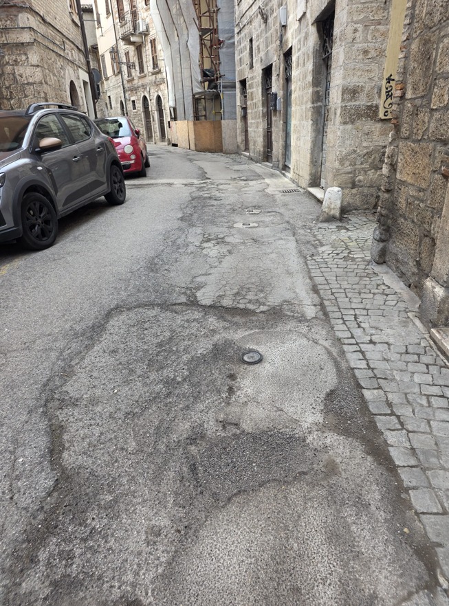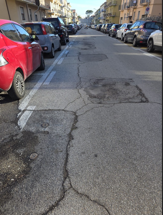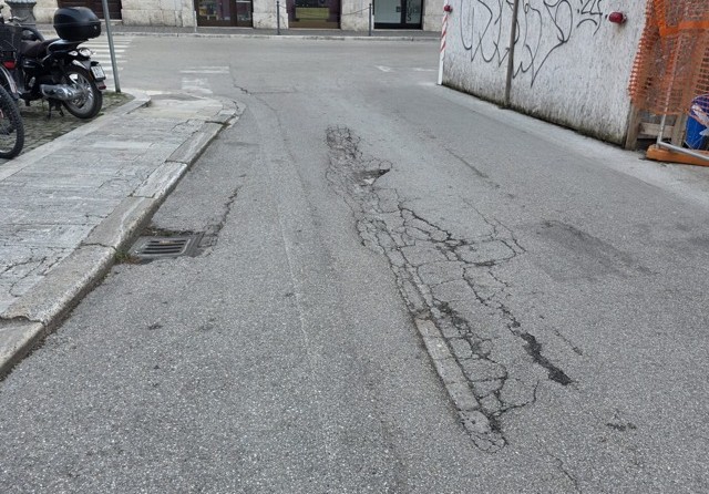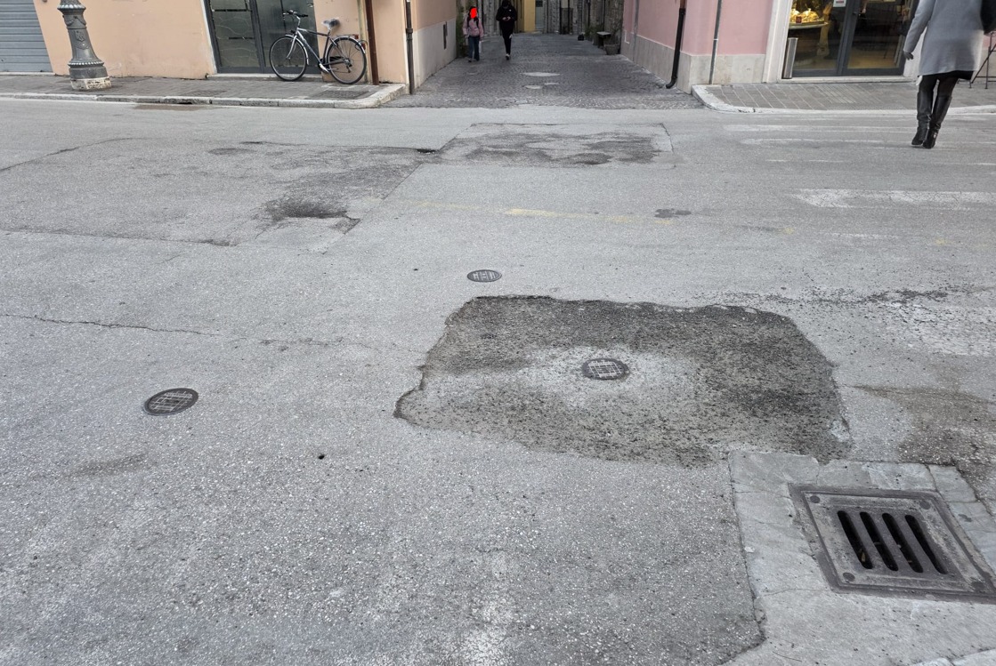 Una situazione di disagio che, come mostrano le immagini giunte in redazione, non riguarda soltanto via Napoli, ma anche altre strade della città, centrali e non: via Treviri, via Dino Angelini, via Francesco Ricci, via Oberdan, Pizza Roma, Corso di Sotto e via Falcone e Borsellino. In molti tratti l’asfalto appare irregolare, in alcuni casi rattoppato più volte, dissestato come uno sterrato di montagna