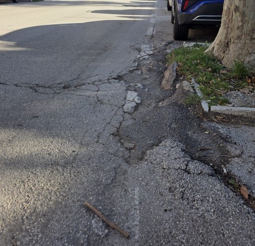 All’origine del problema di via Napoli ci sono, su tutti, le radici degli alberi, che con il tempo hanno spinto dal basso la carreggiata,  oltre a deformare marciapiedi e parcheggi.