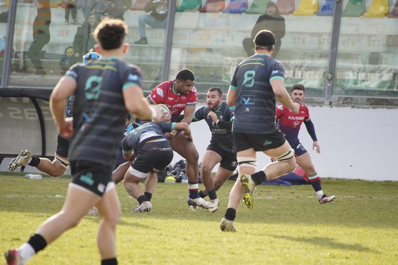 La formazione rossoblù ha affrontato la gara con determinazione, riuscendo a imporre il proprio gioco fin dalle prime fasi su un campo tradizionalmente difficile. Decisivo il contributo della mischia, solida nelle fasi statiche e capace di garantire continuità e avanzamento, permettendo alla squadra di mantenere pressione sugli avversari.