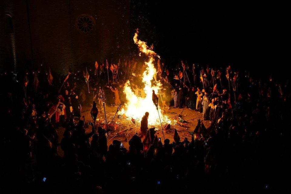La processione è coinvolgente: il serpente di luce avanza tra le case in un turbinìo di scintille e, al termine, tutto finisce in un gigantesco falò, in Piazza San Pietro, con qualcuno che salta tra le fiamme quasi spente (più che una sfida, è un gesto apotropaico).