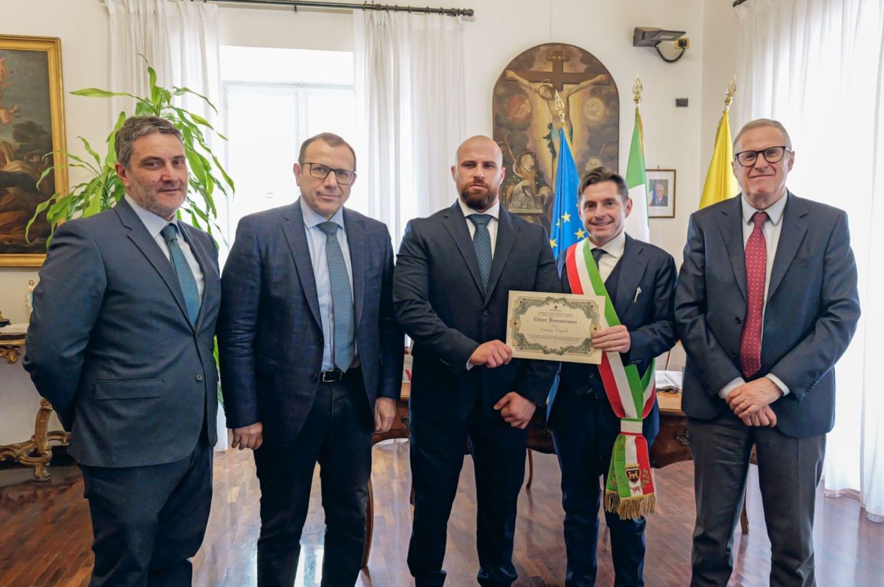 Alla presenza del sindaco Marco Fioravanti, del prefetto Sante Copponi, del questore Aldo Fusco e del presidente del Consiglio comunale Alessandro Bono, è stata consegnata la benemerenza civica all’agente di Polizia Lorenzo Virgulti, rimasto ferito negli scontri durante il corteo per Askatasuna, a Torino.