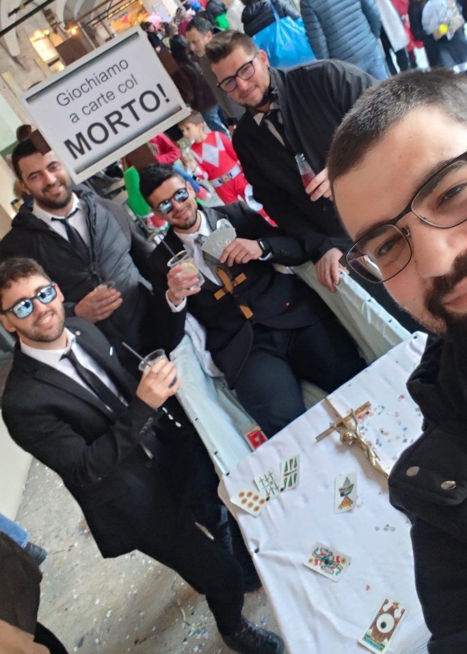 Il Carnevale ascolano prende in giro persino la morte, come ha fatto anche Daniele Bucci, titolare dell’impresa funebre omonima, che si è messo a giocare a carte “col morto”: «Ci eravamo promessi che prima o poi l’avremmo fatto – ha scritto su Facebook – Sappiamo bene chi sarebbe stata la prima a spingerci, ridendo di gusto anche da lassù». Il riferimento è a Gloria, cara amica del gruppo, ragazza “che sapeva ridere di tutto” e che è prematuramente scomparsa nel 2024.