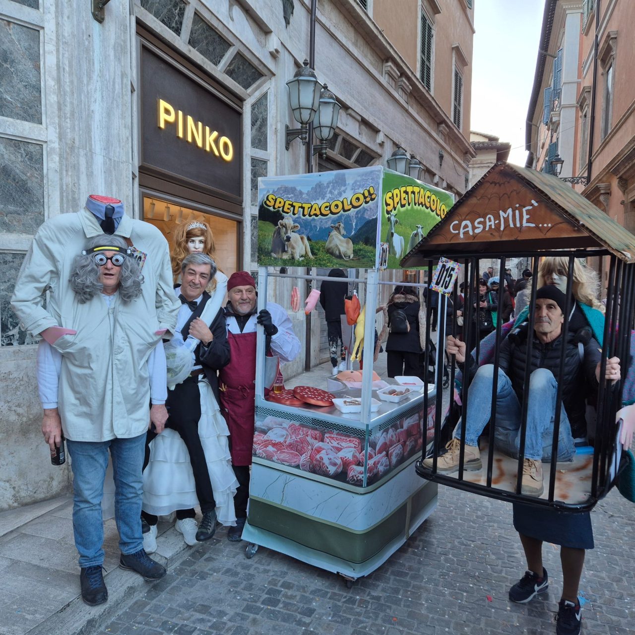 E poi tutta la varia Umanità che il Carnevale si porta dentro. I dimostratori del Zompaflex, ultima versione della prova qualità materassi eseguita grazie a pseudovolontarie rigorosamente giovani e bellocce. Il rinchiuso in casa dalla moglie dietro le sbarre del menage coniugale senza scappatoie.
