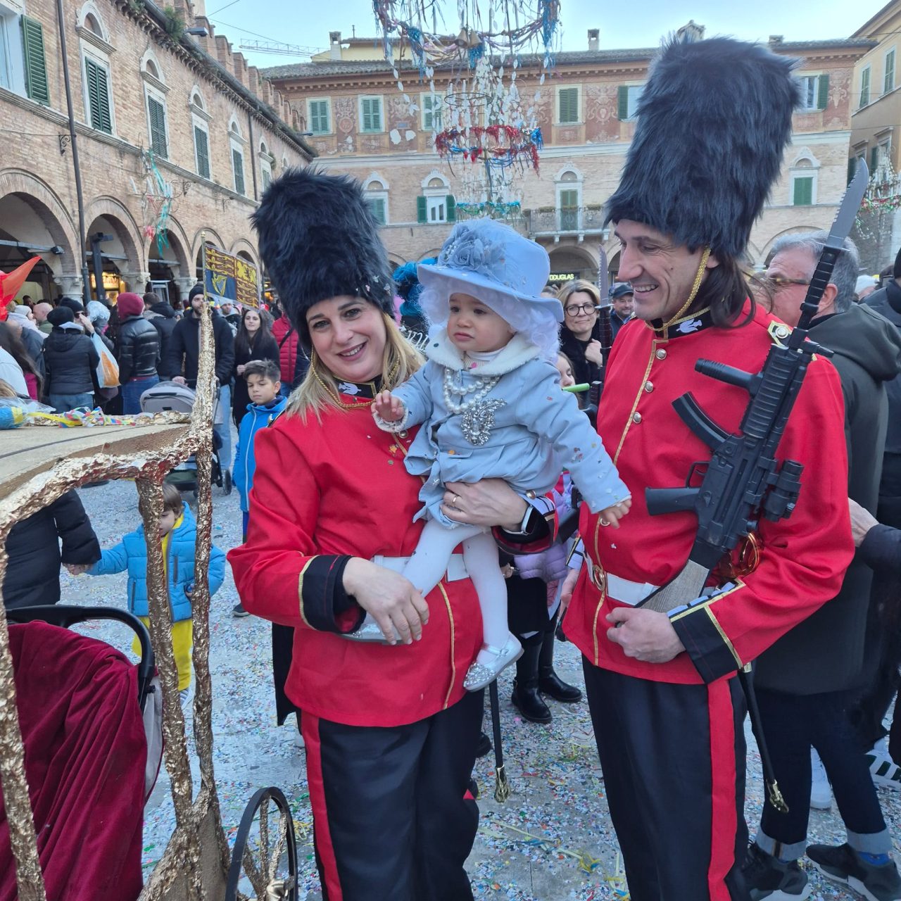 La regina (vera) di casa Fattori che diventa la (baby) queen di casa Windsor, con tanto di carrozza e i genitori in veste di guardie reali.