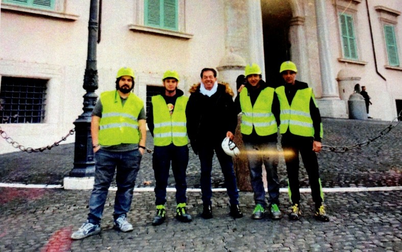 Silvio Perla con i suoi applicatori durante i lavori eseguiti al Quirinale