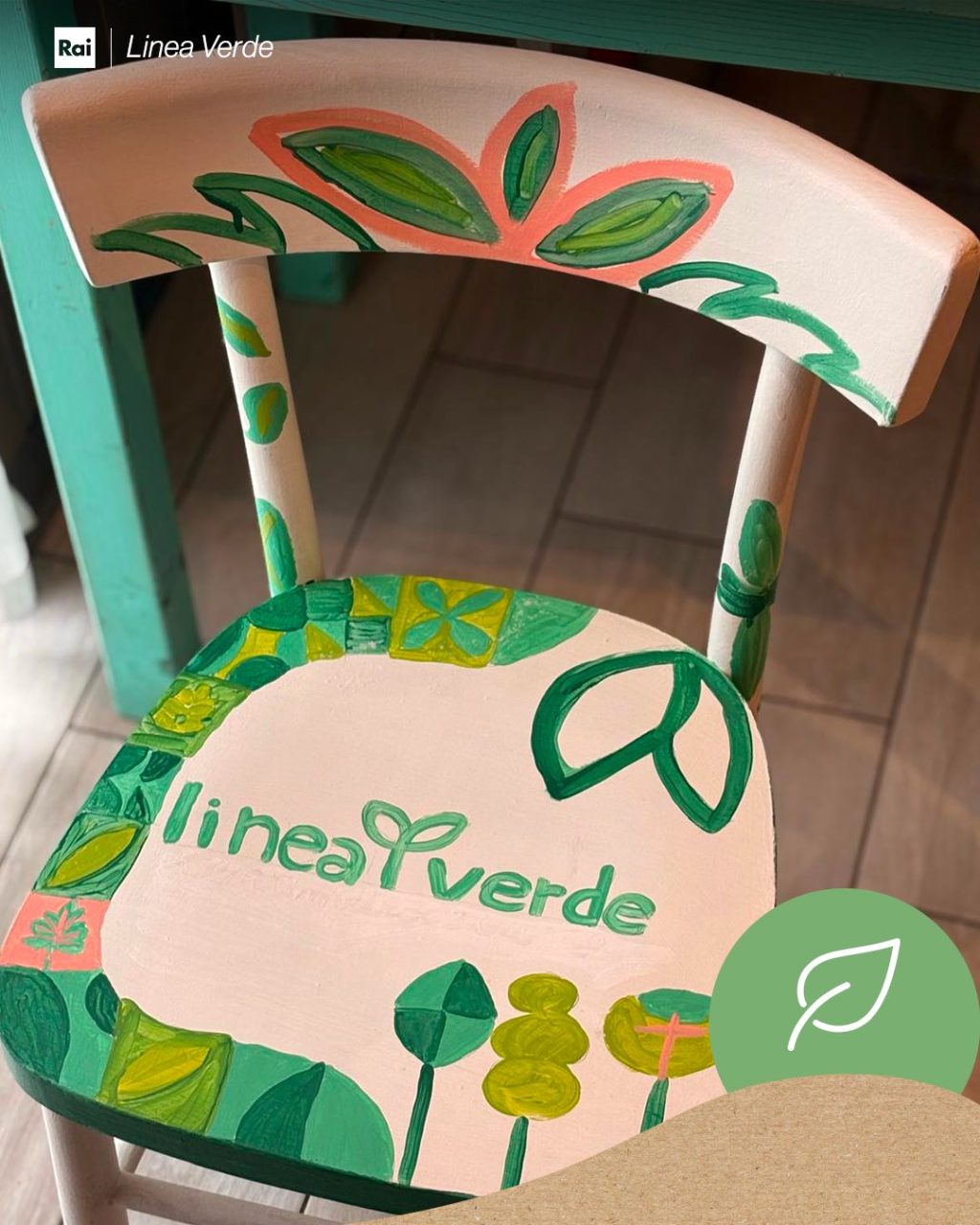 La sedia appositamente dipinta dai ragazzi della Locanda Centimetro Zero in onore della trasmissione Rai Linea Verde