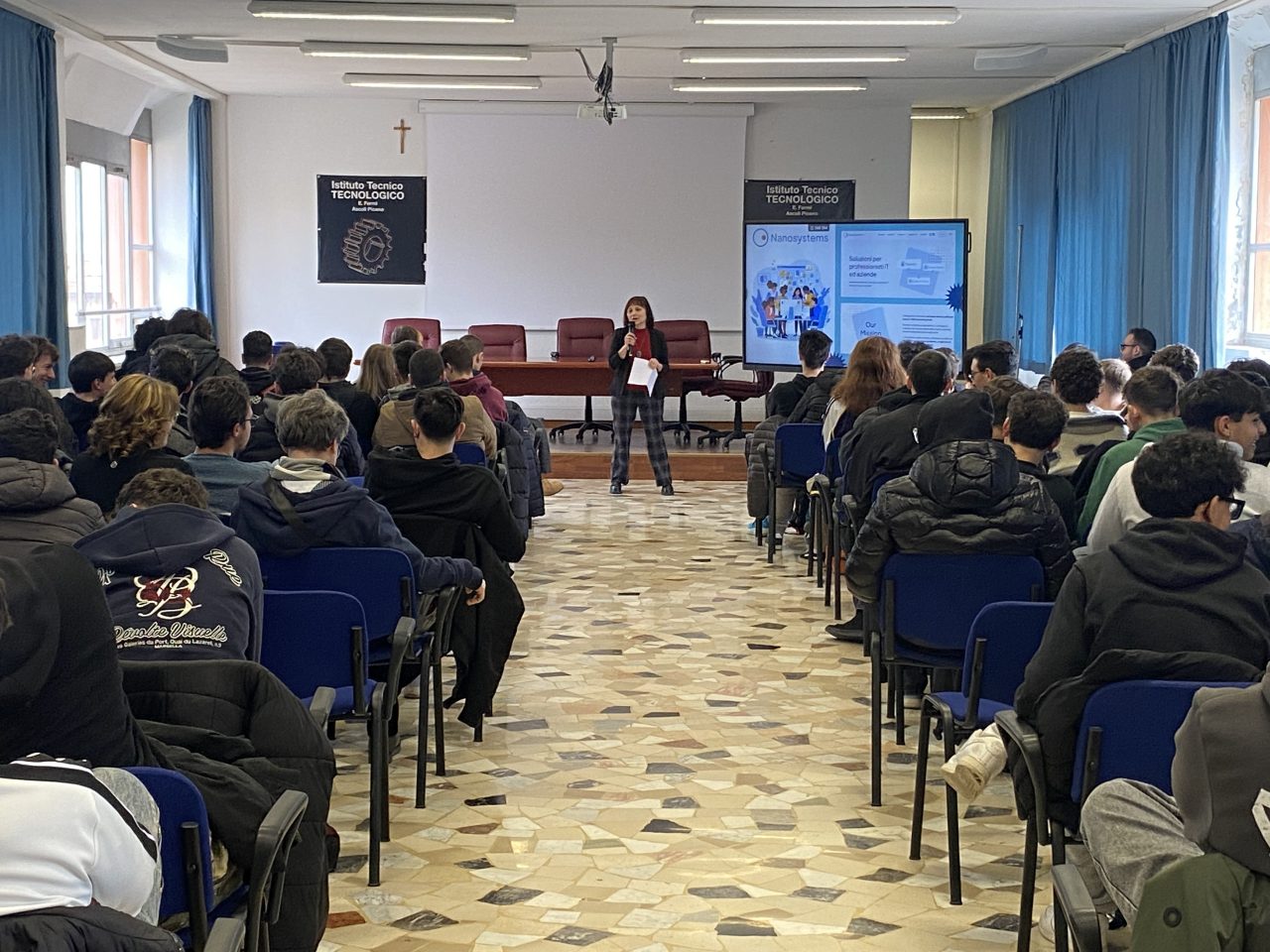 Giovedì 12 febbraio, nell’aula magna dell’Iis “Fermi-Sacconi-CPIA” di Ascoli Piceno, si è svolto un significativo incontro con l’azienda Nanosystems, organizzato alla vigilia del quarantesimo anniversario dalla fondazione dell’impresa. All’evento hanno partecipato le classi dell’indirizzo Informatica e la classe 4ª Chimica e Materiali, protagoniste di un momento di confronto diretto tra scuola e mondo del lavoro.