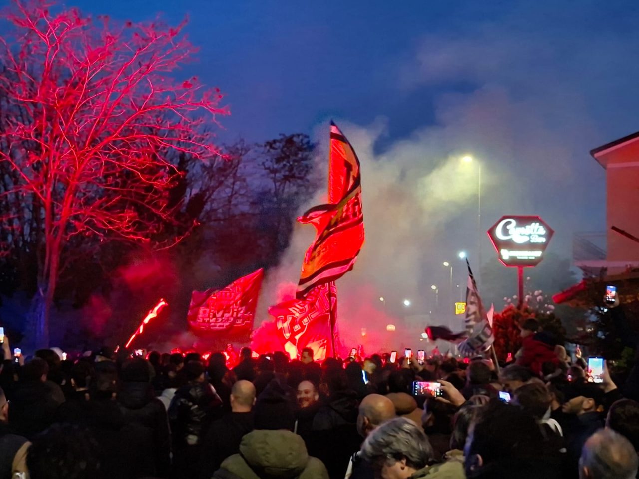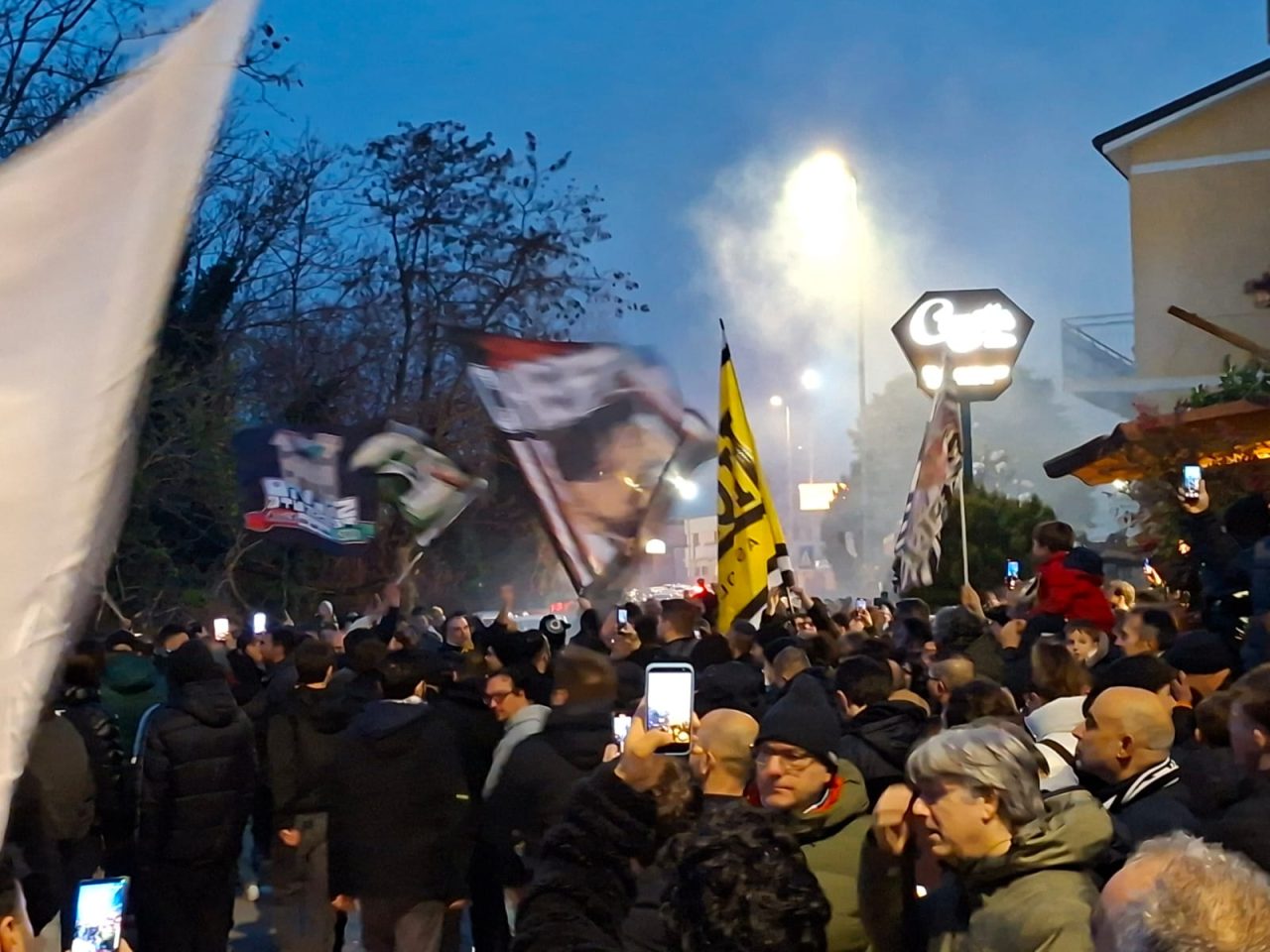Nonostante le limitazioni, il popolo bianconero ha voluto far sentire tutto il proprio sostegno prima della partenza: bandiere al vento, sciarpe alzate e una nuvola di fumogeni a colorare l’aria, mentre il pullman lasciava la città tra gli applausi. Un segnale chiaro: al di là dei divieti, il derby si gioca anche nel cuore dei tifosi.