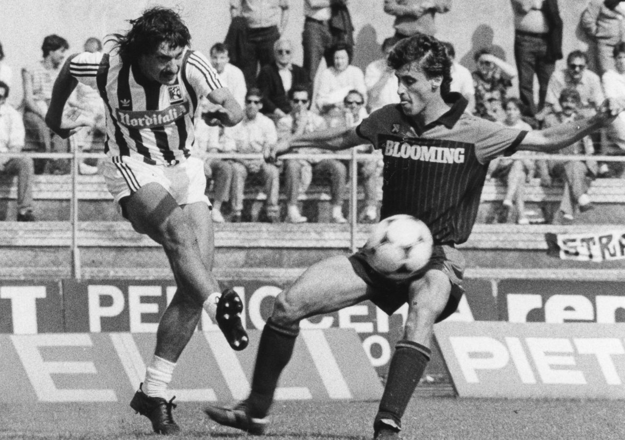 Gli ultimi derby quarant’anni fa e ci eravamo lasciati con un doppio pareggio: senza vincitori né vinti. Nell’allora campionato di Serie B 1985/1986, al Riviera delle Palme, il 5 gennaio 1986 finì 1-1 con il gol del vantaggio di Barbuti per i bianconeri al 59’ e il pareggio di Fattori per i rossoblù al 68’.