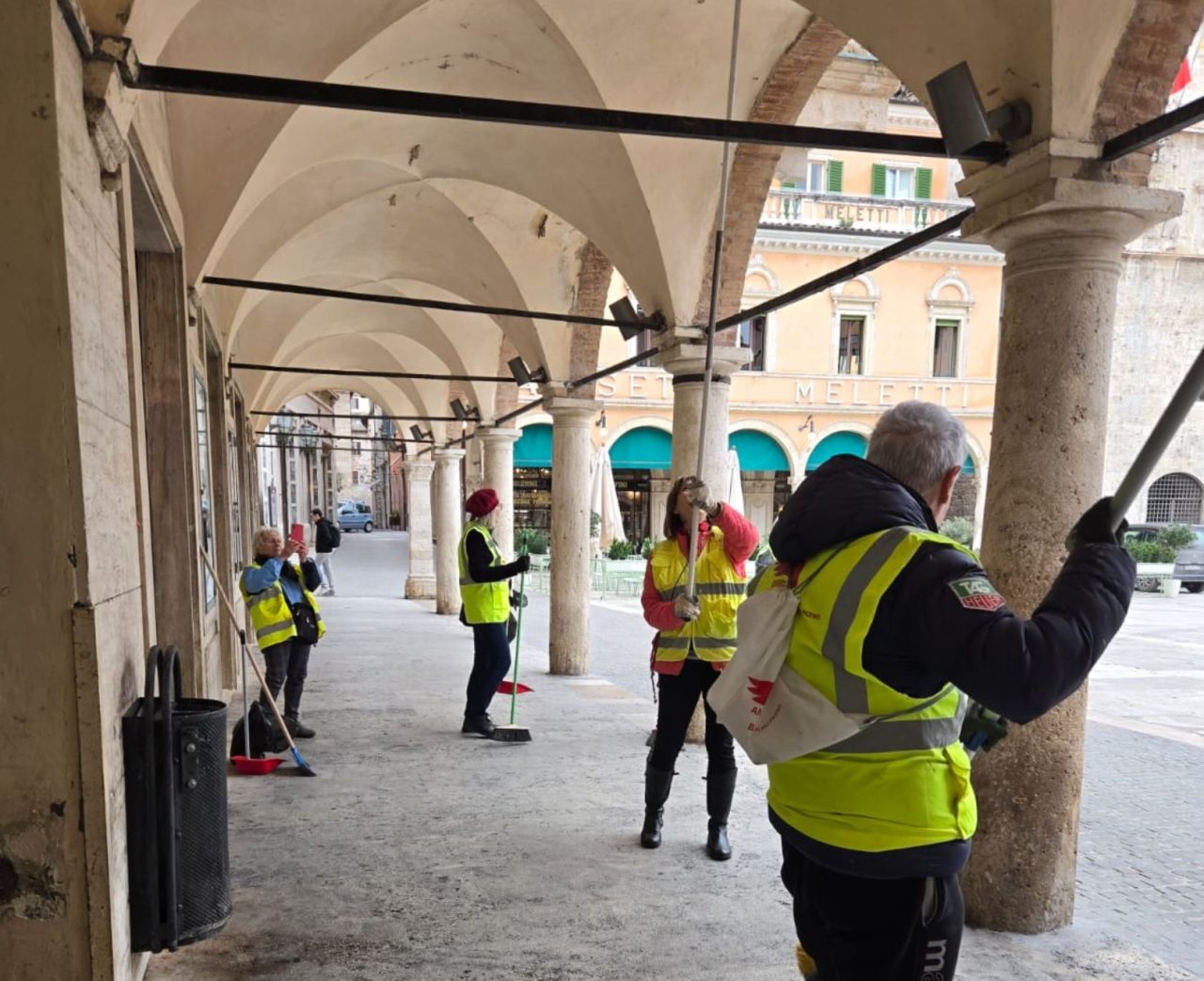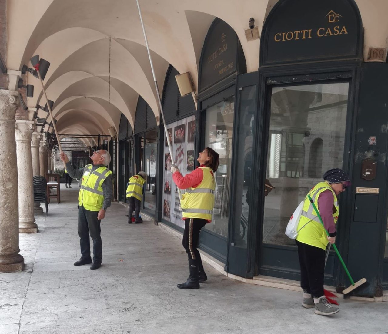 Gli Angeli del Bello colpiscono ancora: dopo essere intervenuti a Porta Cappuccina lo scorso gennaio, i volontari dell’associazione si sono recati, nella prima mattina del 5 marzo, in Piazza del Popolo, dove hanno tirato a lucido il loggiato.