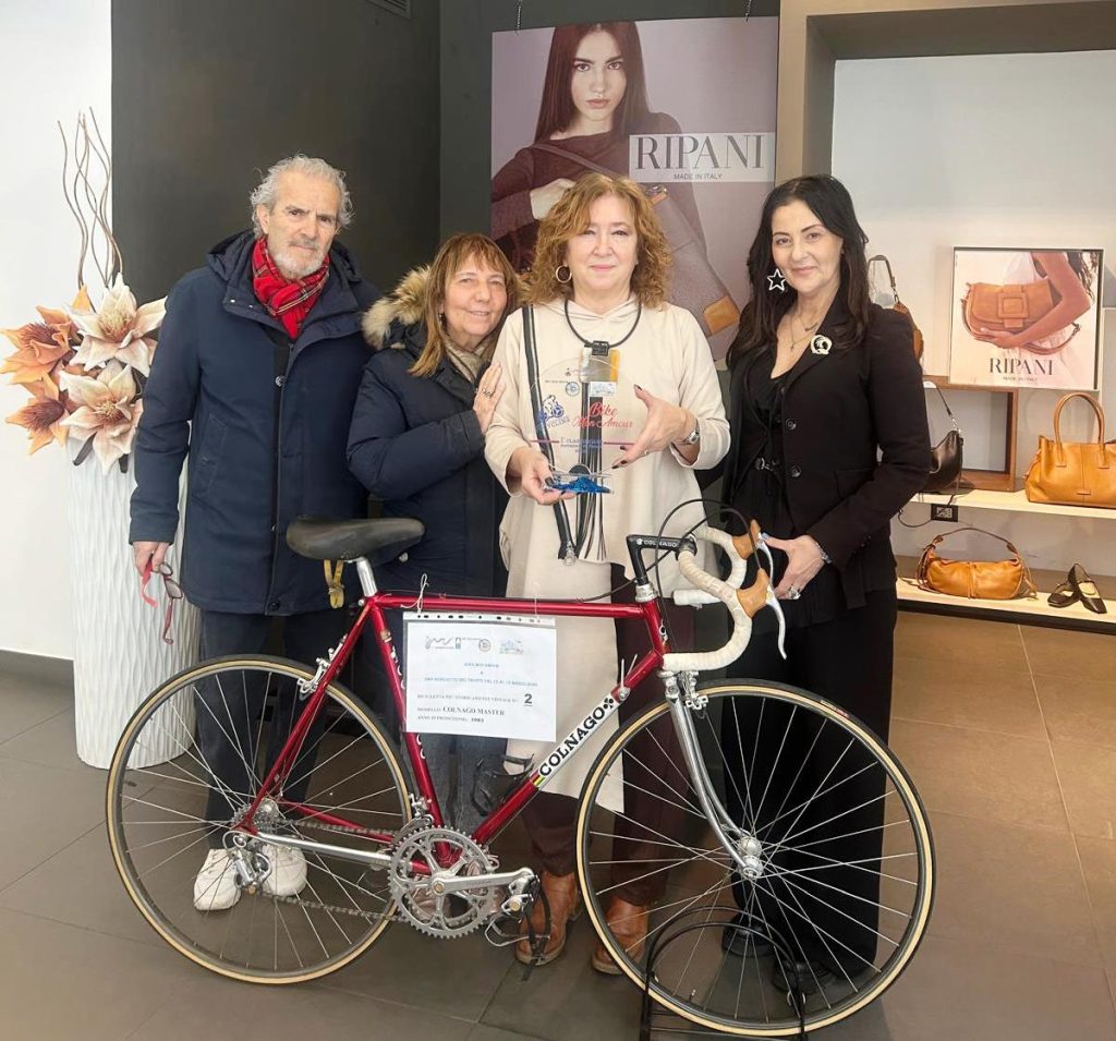 Gli organizzatori consegnano il premio al negozio Ripani Bags