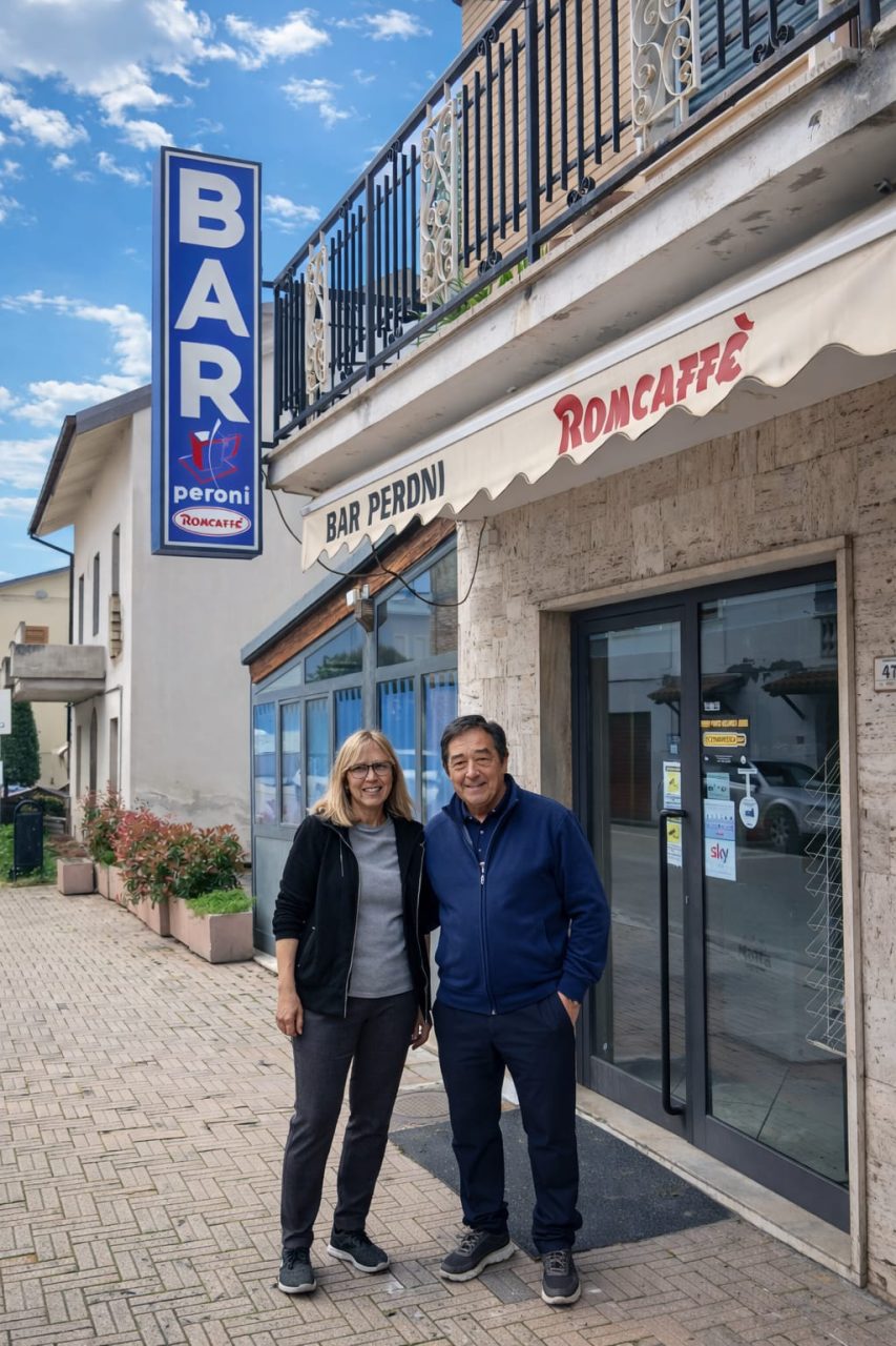 Giovanna e Claudio Peroni davanti al bar d’ B’tò a Poggio di Bretta