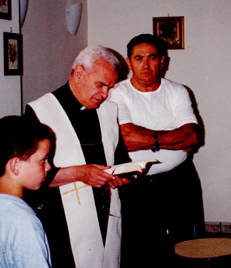 Benito con il parroco don Giulio Balestra
