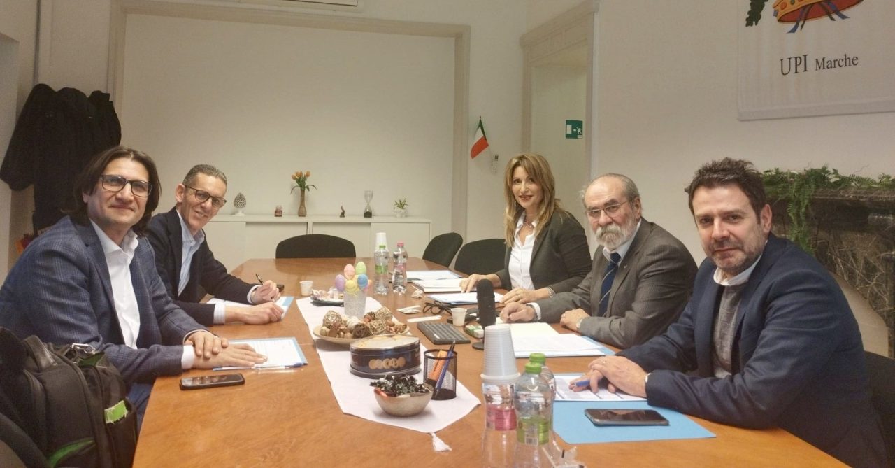 Il nuovo consiglio di presidenza dell’Unione delle Province d’Italia Marche si è riunito questa mattina presso la sede di corso Garibaldi per un primo confronto tra i nuovi presidenti eletti durante la tornata elettorale dello scorso 15 marzo. Presenti Giuseppe Paolini, presidente della Provincia di Pesaro Urbino e di Upi Marche, Daniele Carnevali, vicepresidente di Upi Marche e presidente della Provincia di Ancona, Fabio Salvi, presidente della Provincia di Ascoli Piceno, Michele Ortenzi, presidente della Provincia di Fermo, Alessandro Gentilucci, presidente della Provincia di Macerata (in video collegamento) e la direttrice di Upi Marche, Valeria Ciattaglia.