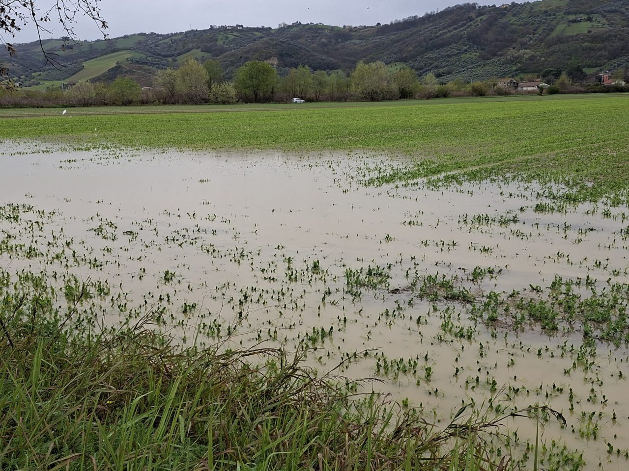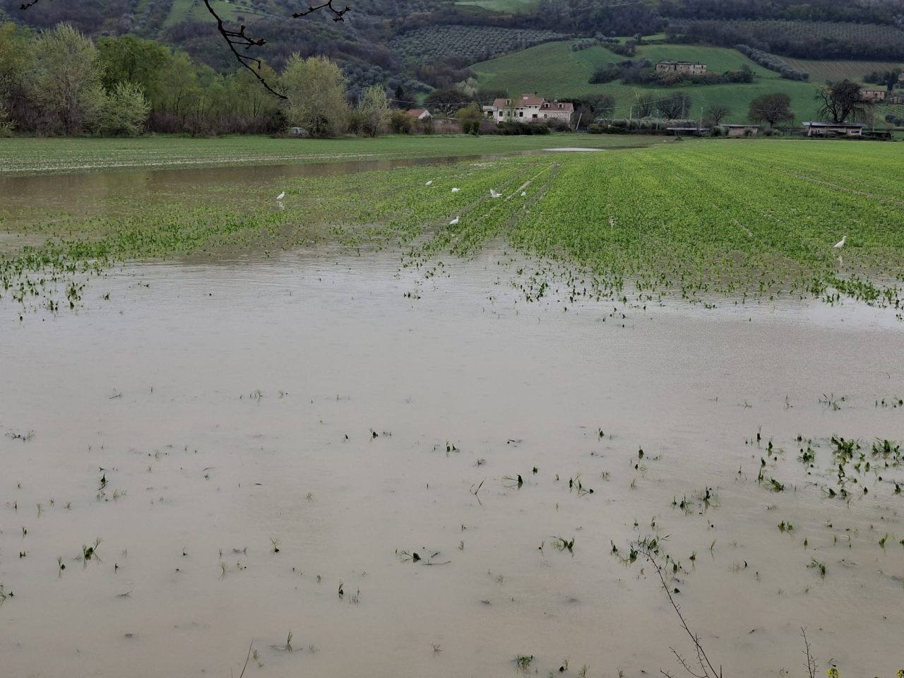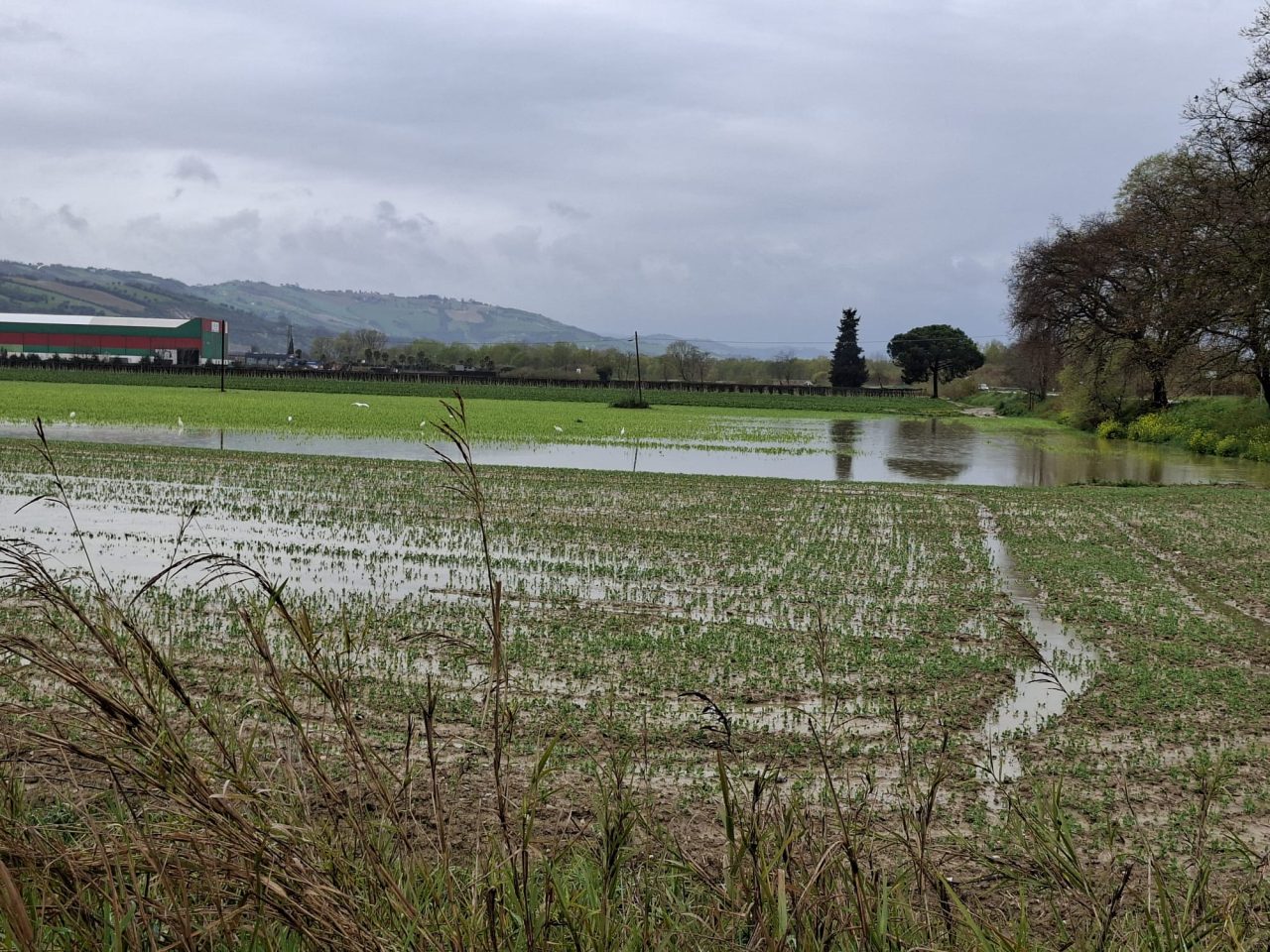 Fiume Tronto e terreni allagati tra Pagliare di Spinetoli e Monsampolo