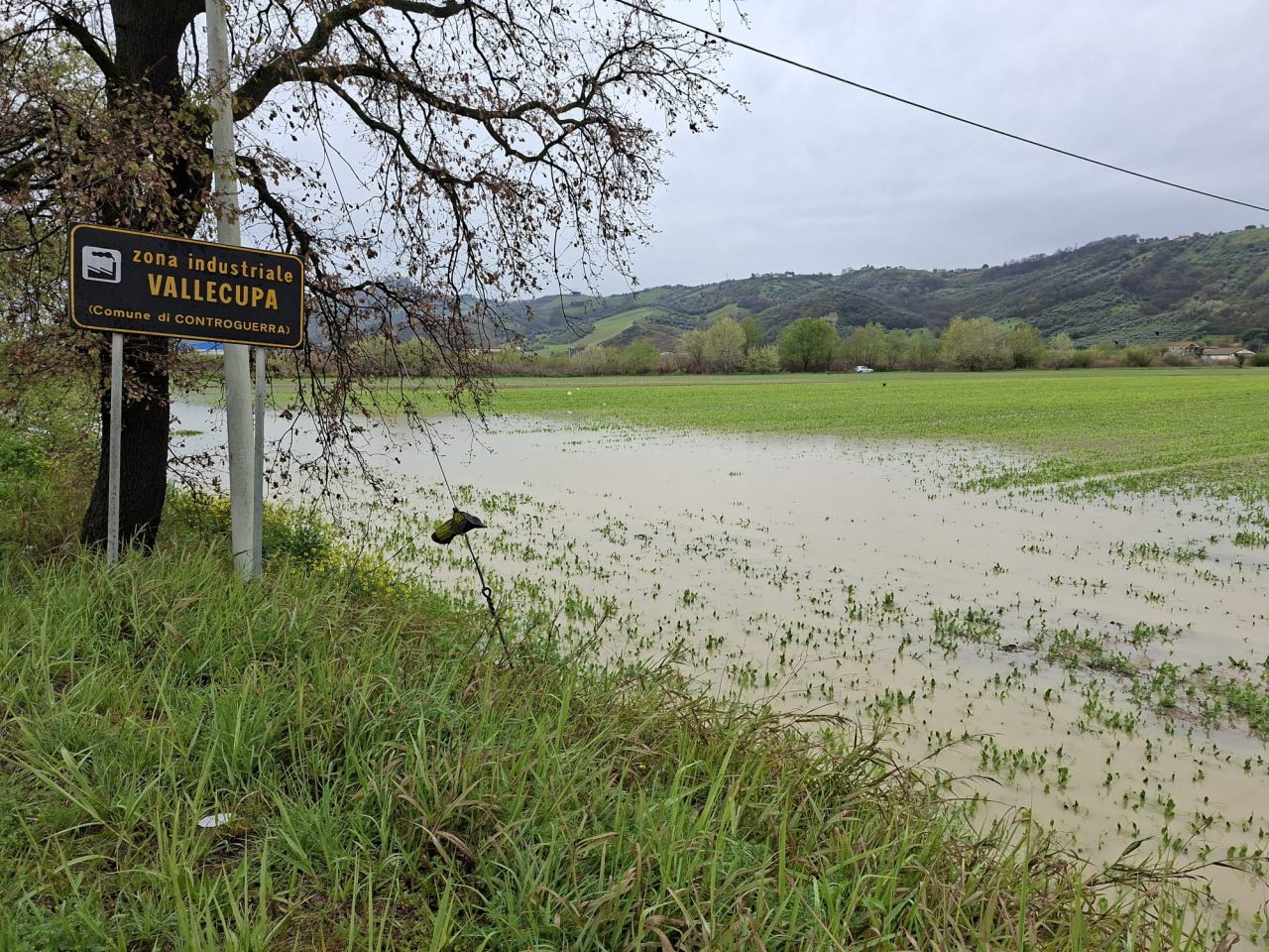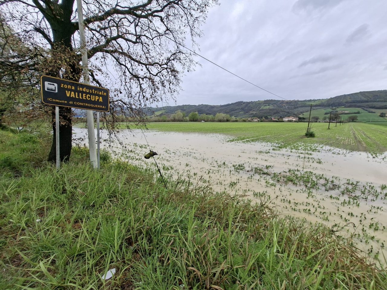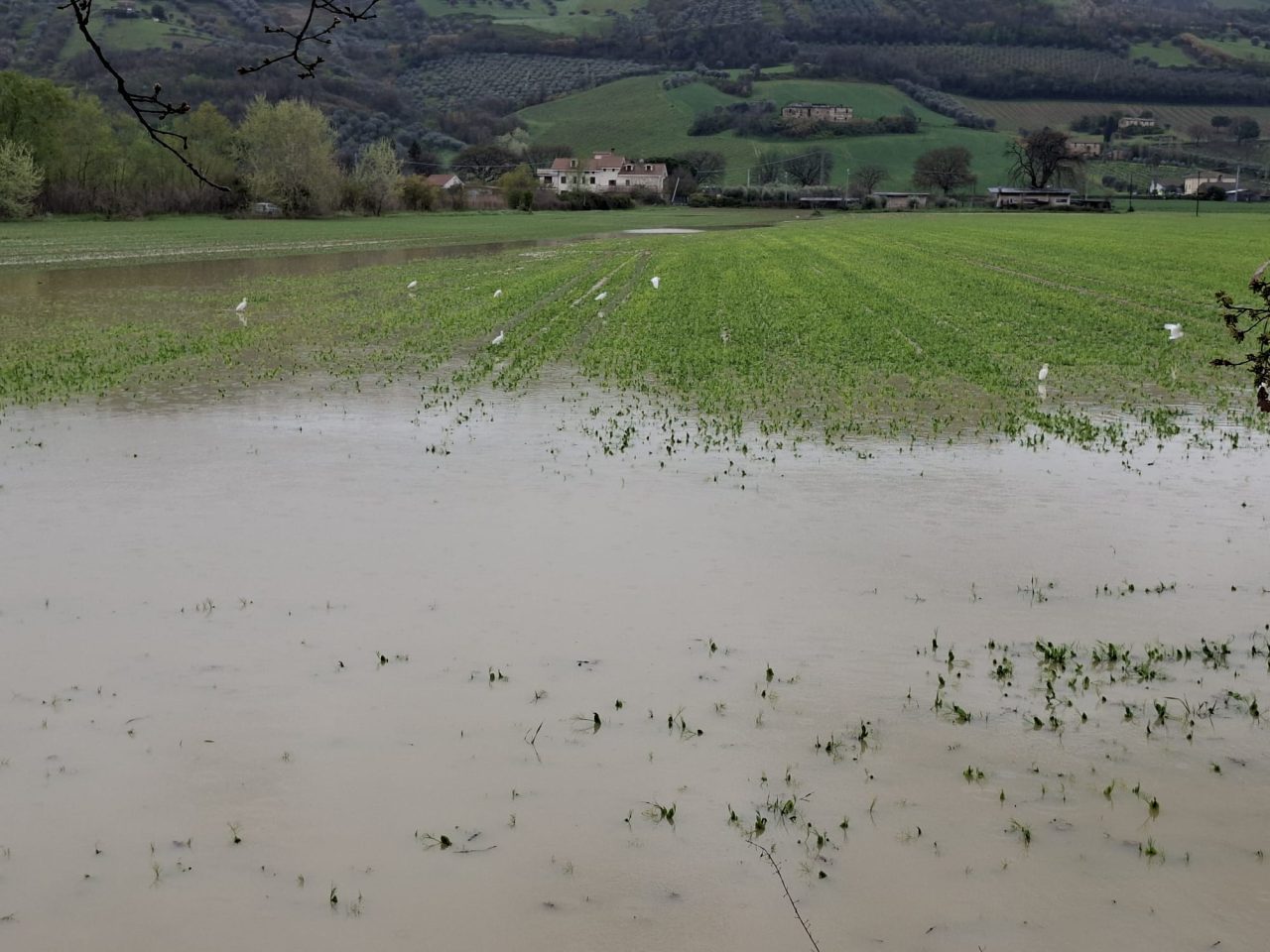 Fiume Tronto e terreni allagati tra Pagliare di Spinetoli e Monsampolo