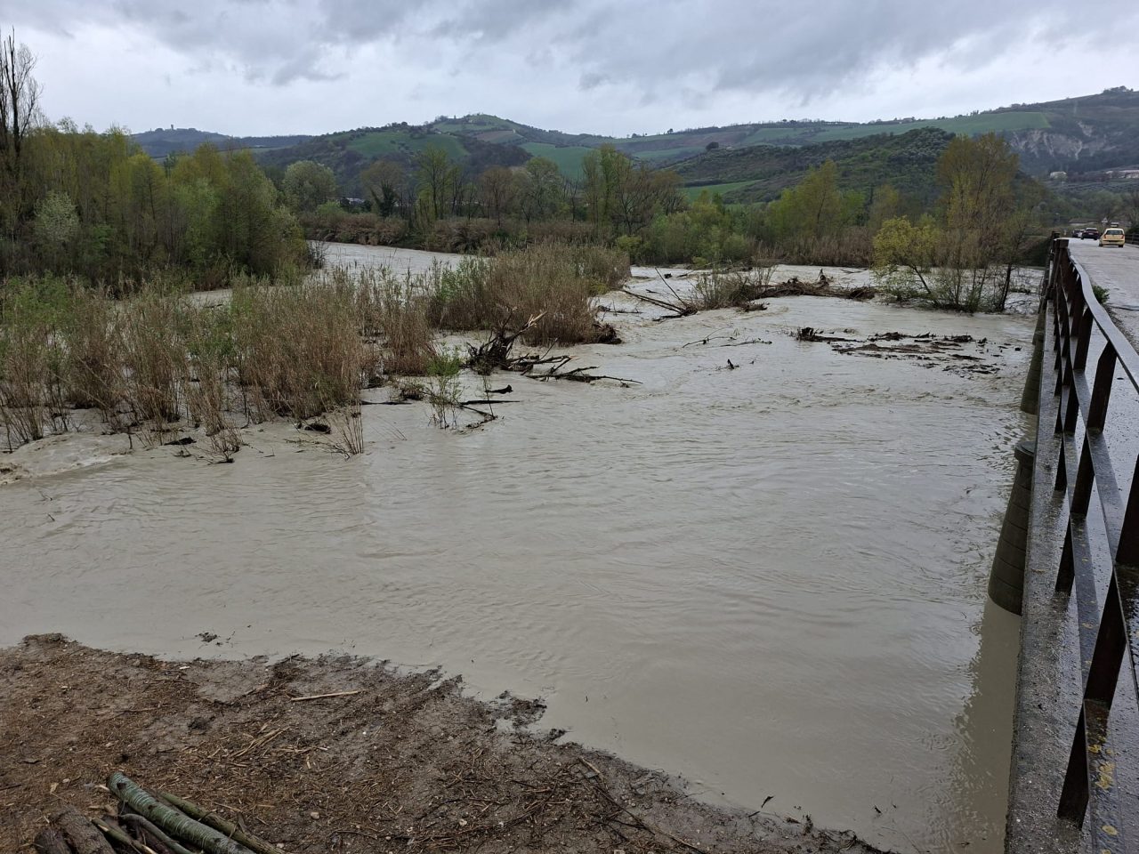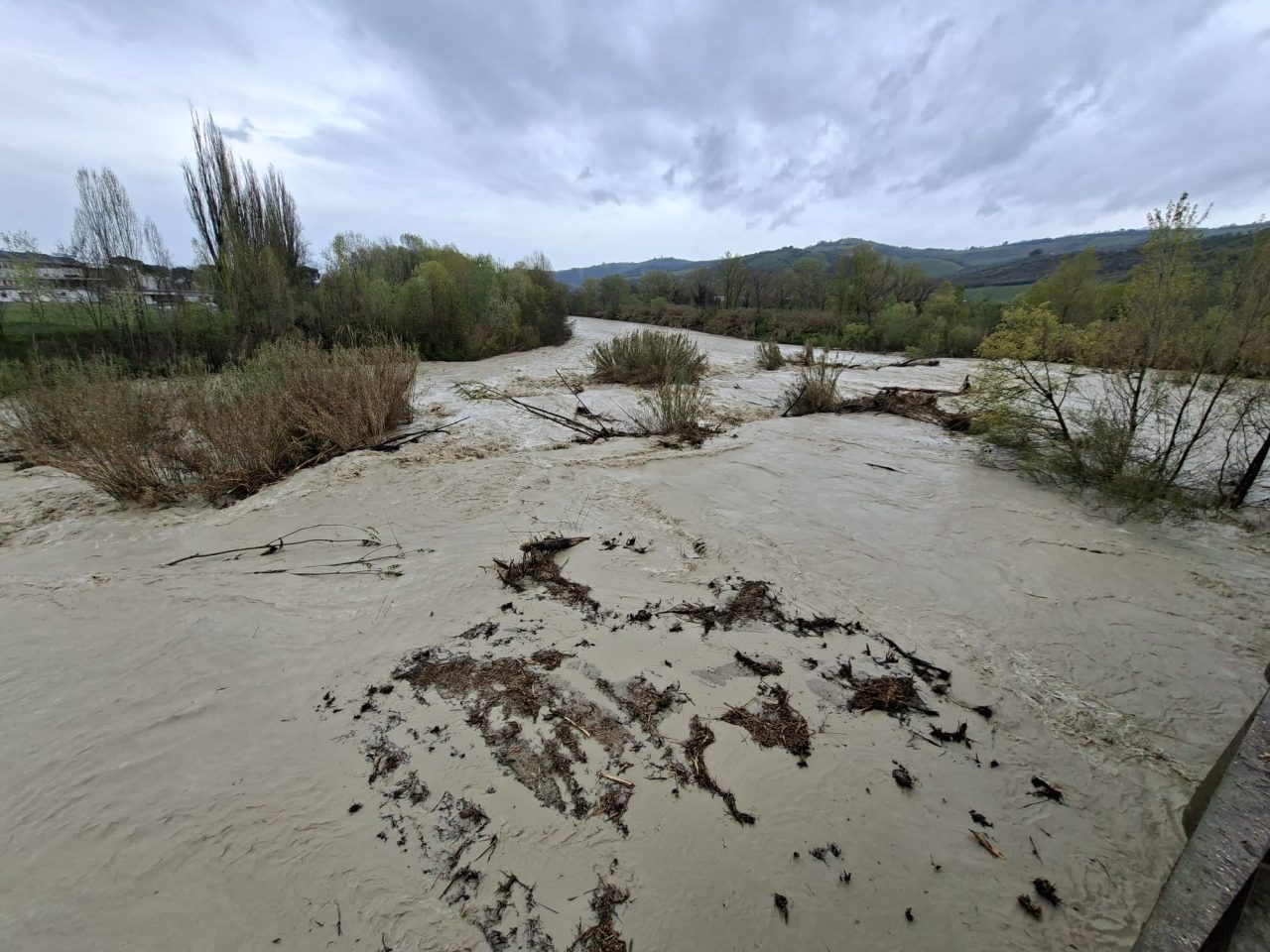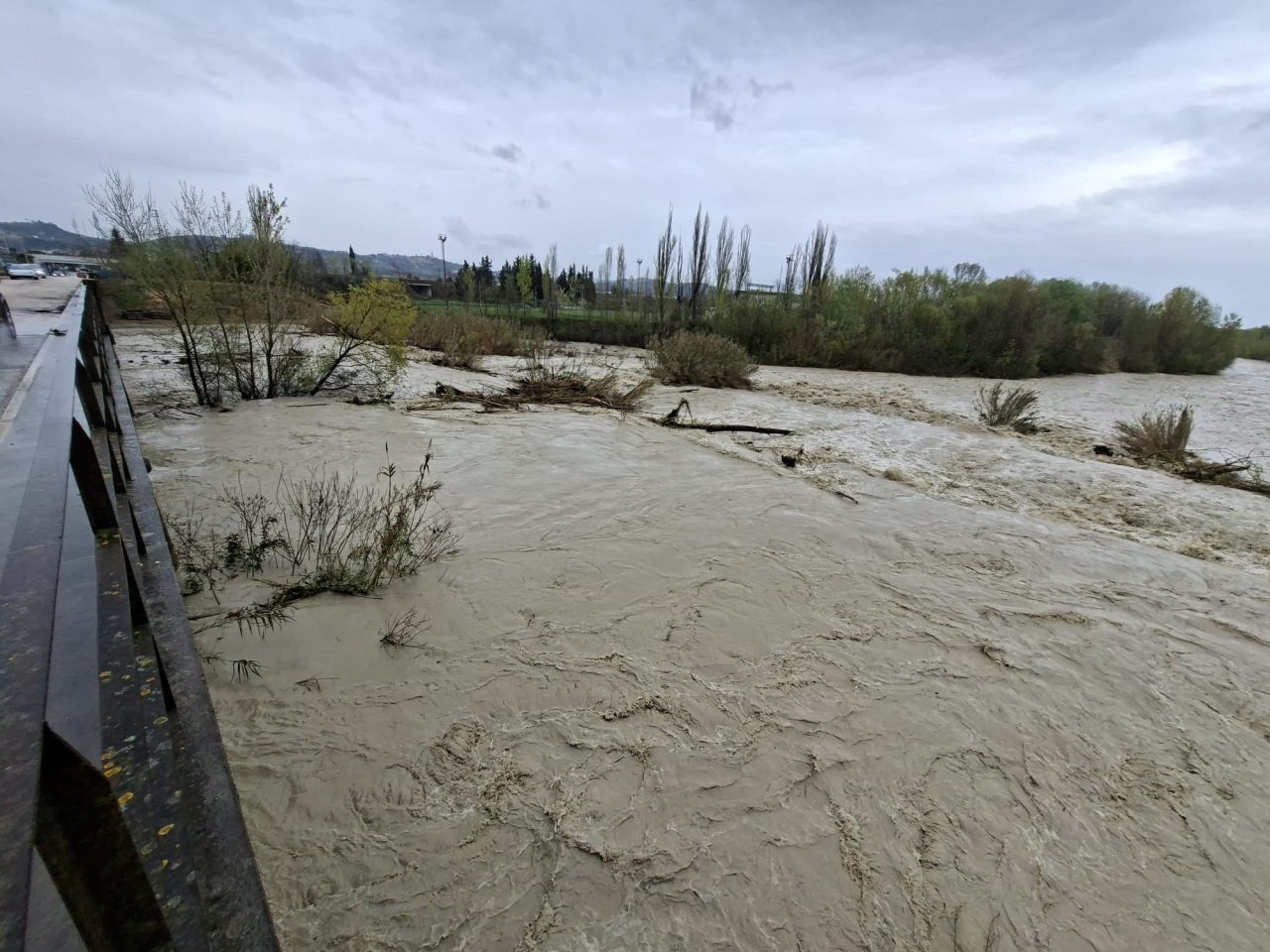 Fiume Tronto, zona Marino (ponte Campi Agostini): fiume e terreni allagati