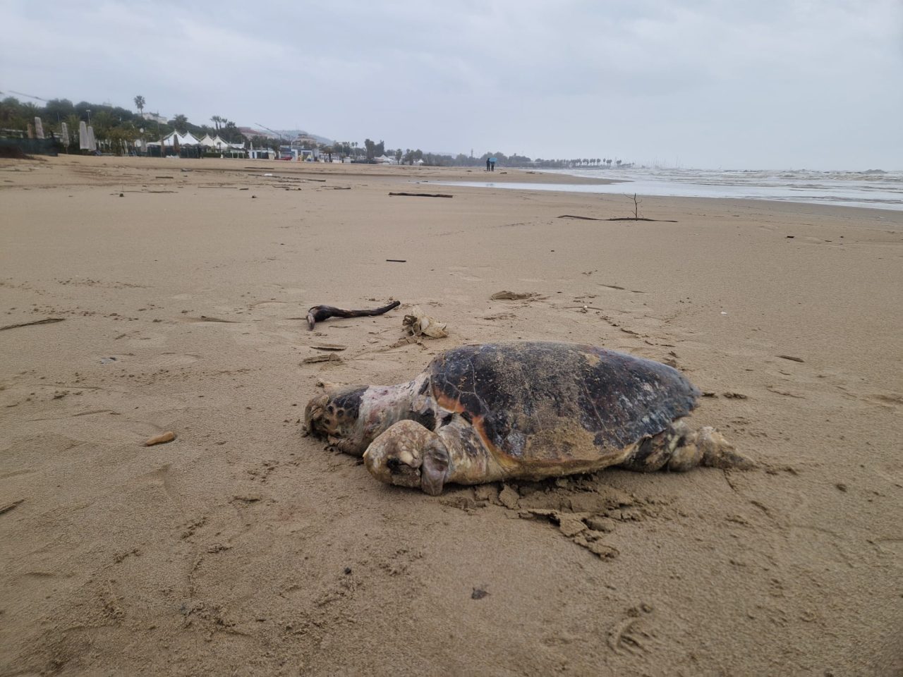 Nella mattinata di giovedì 2 aprile, una tartaruga marina è stata ritrovata senza vita sulla battigia, probabilmente trascinata a riva dalla violenta mareggiata che nelle ultime ore ha interessato la costa. La carcassa si trova nei pressi dello chalet “Zodiaco”. Non si esclude che la tartaruga possa essere morta già in mare aperto, per poi essere sospinta verso la riva dalla forza delle onde e del vento.