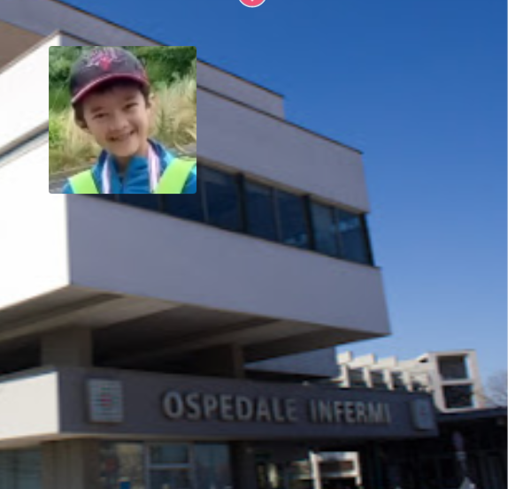 Matteo Brandimarti e, sullo sfondo, l’ospedale di Rimini dove era ricoverato