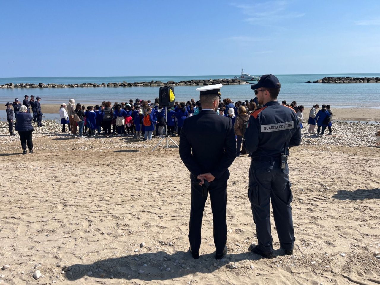 La Guardia Costiera di San Benedetto insieme con gli studenti, a Grottammare