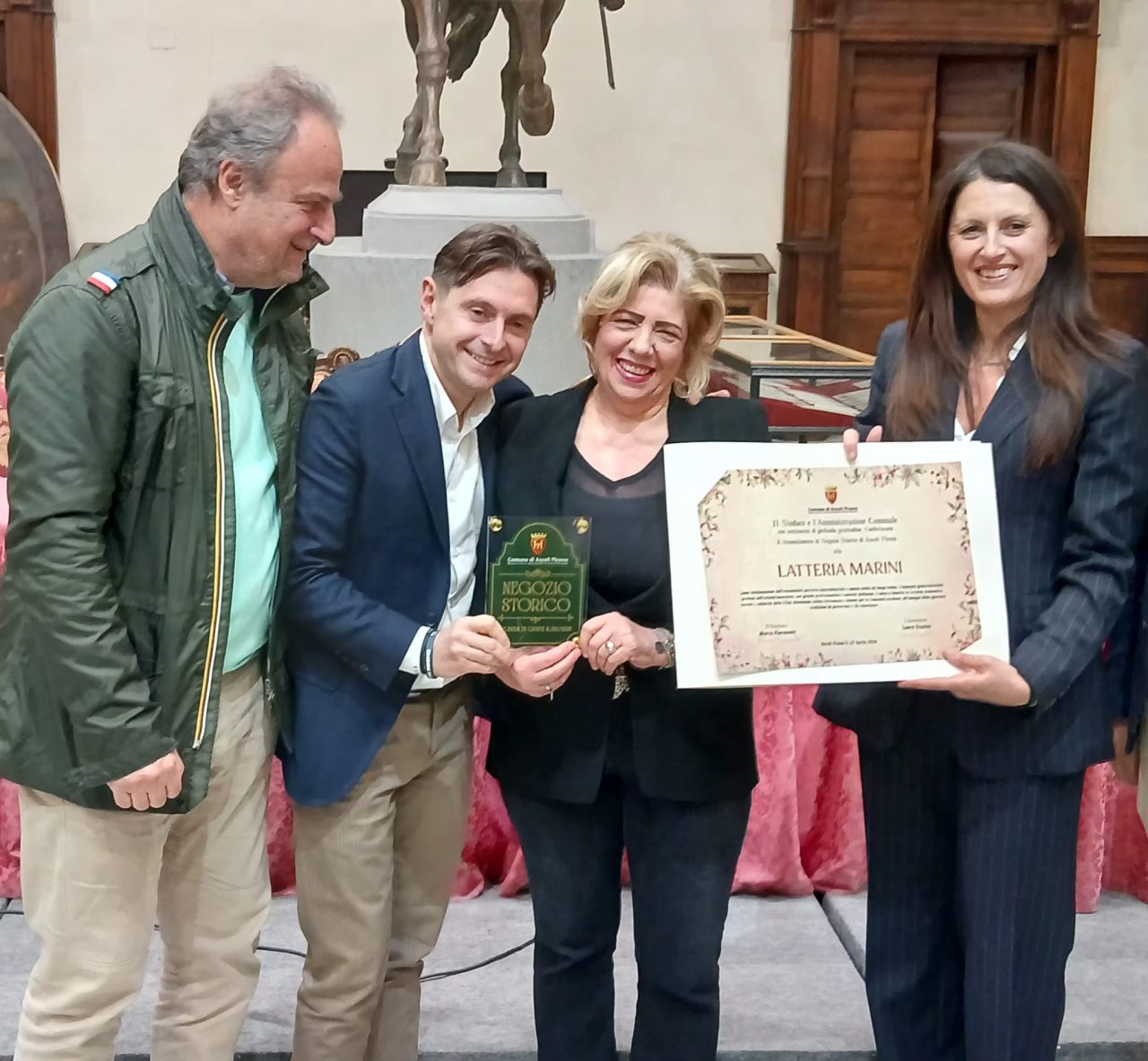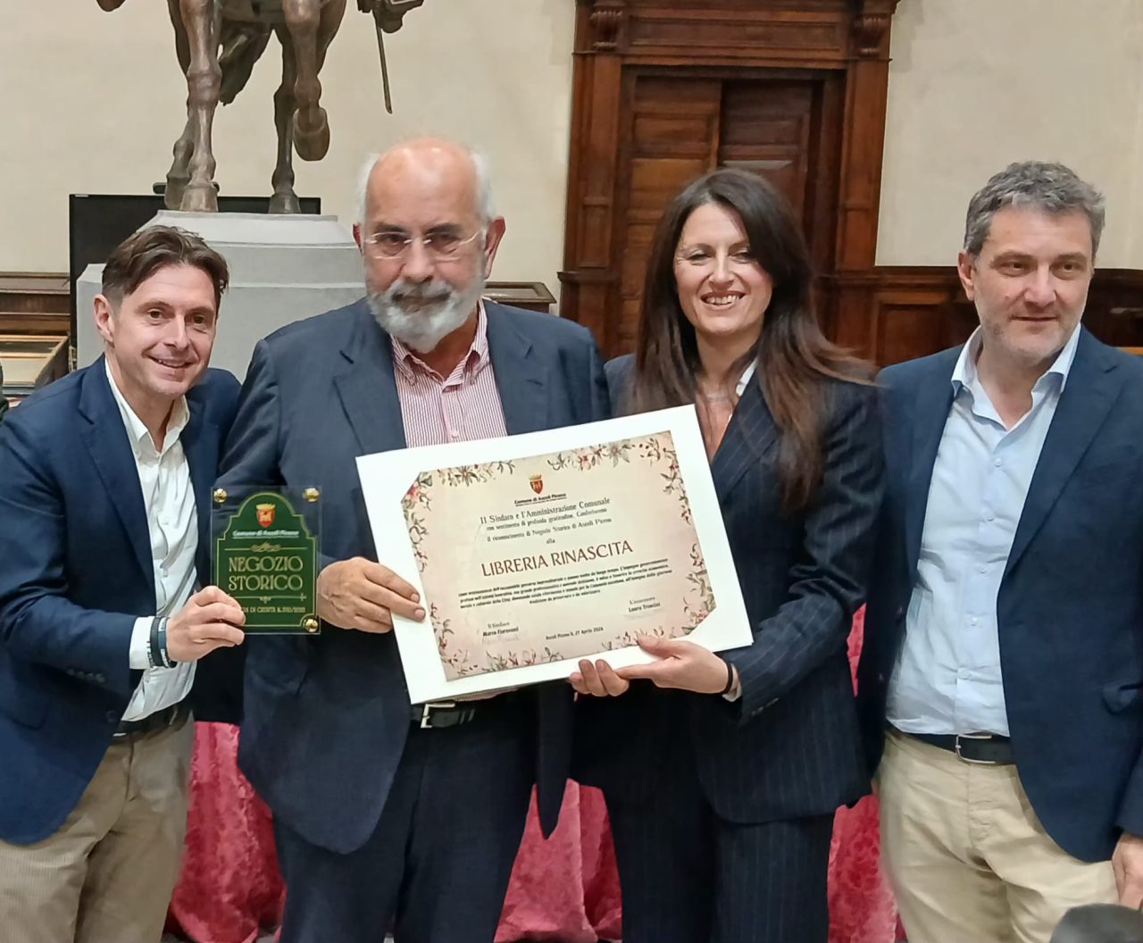 Per tutti questi motivi, allo scopo di premiare la continuità, il coraggio, la voglia di scommettere ancora sul proprio lavoro, l’Arengo ha deciso di insignire tali valorose attività mercantili cittadine. Nella sala della Vittoria della Pinacoteca, oggi 27 aprile, sono state consegnate oggi pergamene e targhe ai titolari delle attività registrate nell’appena creato “Albo dei Negozi Storici”.