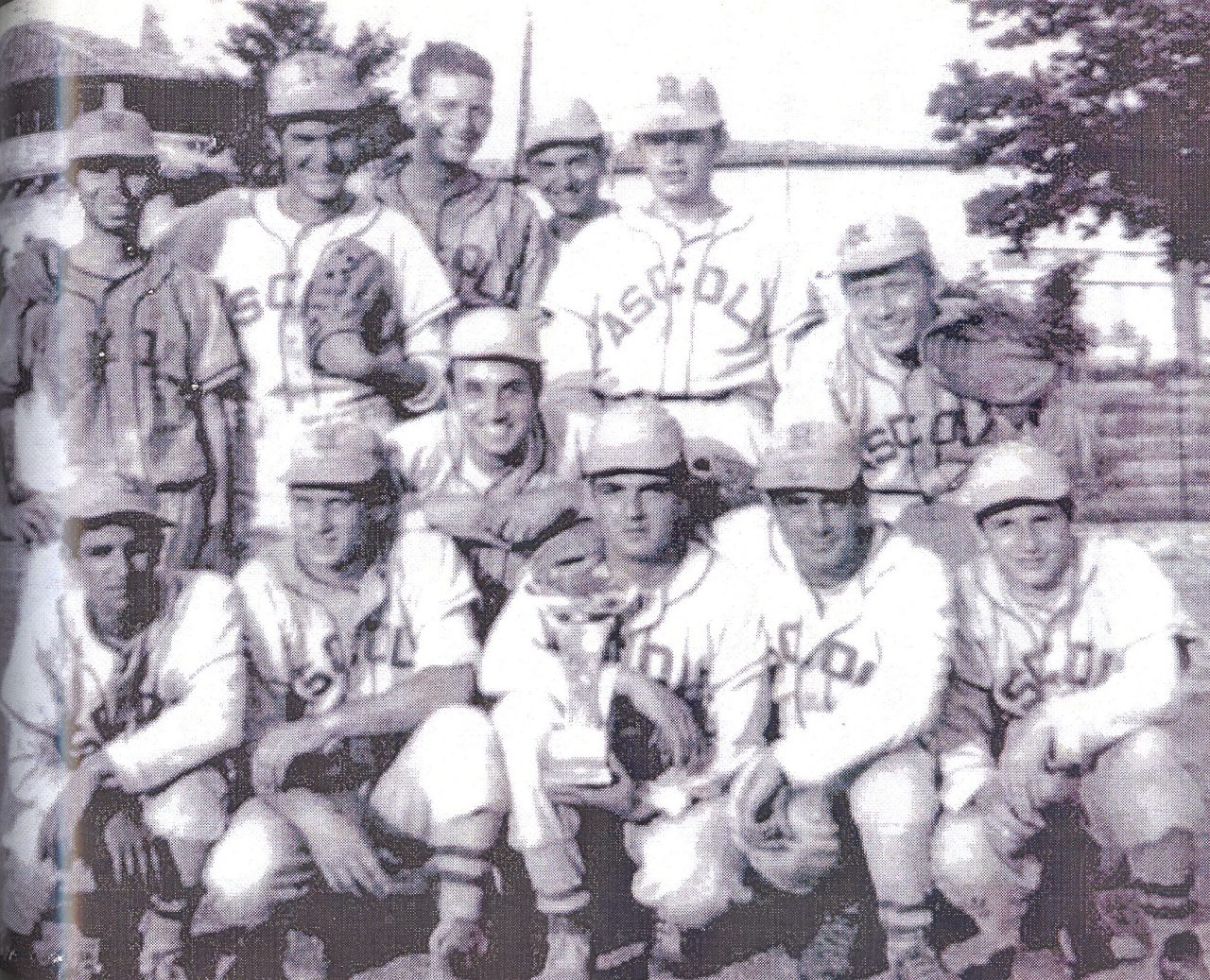 Una delle primissime formazioni del BCAscoli: Mario Curi, Piero Celani, Mario Scaletti, Berardino Leone, Luigi Acierno, Francesco Simoni, Maurizio Felicetti, Giuseppe Felicetti, Aldo Pizzingrilli, Domenico Calcagni, Giuseppe Sestili, Serafino Guaiani.