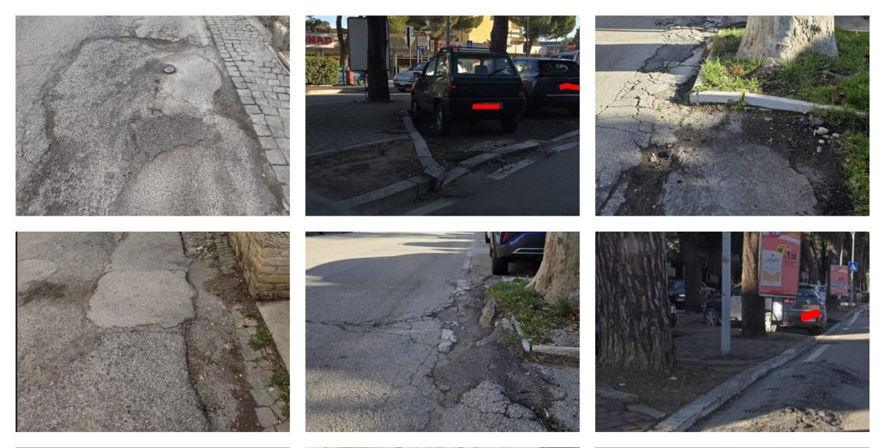 ASCOLI - Da Corso di Sotto a Porta Romana, da via Angelini a viale Treviri, decine di foto-segnalazioni da parte dei cittadini mostrano un quadro fatto di dissesti e disagi per chi guida o va in bici. Non una bella immagine per la città