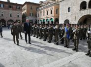 ASCOLI – Piazza del Popolo gremita per la solenne cerimonia dedicata ai volontari in ferma iniziale in forza al 235° Reggimento Addestramento Volontari “Piceno”. Presenza speciale del rappresentante del governo