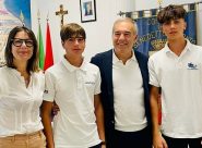 SAN BENEDETTO – Giuseppe Alfieri (15 anni) e Alessandro D’Orazio (16), studenti del Liceo Scientifico “Rosetti”, ricevuti in Municipio da Antonio Spazzafumo e Cinzia Campanelli per la loro qualificazione ai Campionati italiani giovanili di vela
