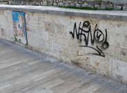 ASCOLI – Scritte con bombolette spray sul muro in travertino appena restaurato di Corso Vittorio Emanuele. Sdegno e richieste di telecamere da parte dei cittadini