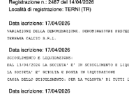 SERIE C – Un atto pubblico notarile iscritto nel Registro delle Imprese sancisce lo scioglimento della società per volontà dei soci e l’avvio della procedura di liquidazione volontaria. Così si entra in un terreno regolato da norme precise, che incidono anche sull’affiliazione federale e sulla regolarità dei campionati. Nel pomeriggio partita decisiva nelle aule di Terni