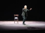 ASCOLI – Il grande attore ha portato in scena il suo intenso omaggio al poeta marchigiano. Oltre un’ora di poesia in un fluire magnetico partito da “Il sabato del villaggio” e culminato con “L’infinito”, declamata insieme al pubblico: «Negli Usa la recitavano in coro, nelle scuole italiane le poesie non si studiano neanche più a memoria». Alla fine applausi scroscianti. Poi la critica all’altezza “sbagliata” del palco del Massimo cittadino