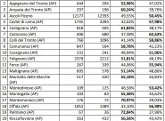 SISMA&VOTO – Nonostante il peso dei grandi centri abbia riequilibrato il risultato, resta un dato politico di fondo: nelle aree interne del cratere il sì non solo tiene, ma prevale. Tra i dati più significativi: Monte Cavallo (82,35%) e Bolognola (78,02%) in provincia di Macerata, Palmiano (72,04%), Montemonaco (70,97%), Castignano (61,83%) e Acquasanta Terme (60,31%) nell’area ascolana, Castelsantangelo sul Nera (67,59%) e Cessapalombo (63,59%) nel Maceratese, Montappone (60,36%) e Smerillo (60,11%) nel Fermano