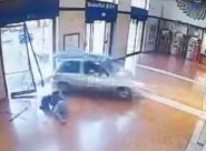 DALLE MARCHE – Le immagini riprese dalle telecamere hanno immortalato la vettura mentre sfonda le vetrate, a Fabriano (Ancona), urtando un pendolare per poi scagliarsi contro i seggiolini in sala d’attesa e concludere la corsa sulla banchina
