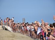 ANCONA – La manifestazione, organizzata dal comitato «No al muro sì al mare», ha visto migliaia di persone prendersi per mano lungo tutta la spiaggia attrezzata di Falconara e Palombina Nuova, per ribadire ancora una volta, con un gesto simbolico, la propria contrarietà al progetto di riduzione dell’impatto acustico di Ferrovie che prevede un muro alto fino a 8 metri. Presenti istituzioni e comitati di cittadini da tutte le Marche, Falconara in testa