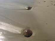 CAMPOFILONE – Turisti divisi tra chi tentava un salvataggio e chi protestava per la pericolosità di un eventuale bagno a riva. Diverse le meduse fotografate sulla spiaggia tra Marina di Campofilone e Marina di Massignano.